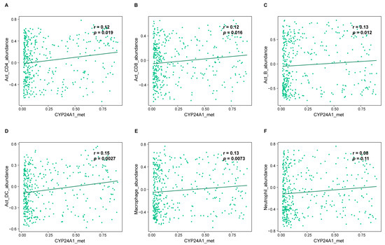 As shown in Figure 5A–E, the DNA methylation of CYP24A1 was found to be significantly positively correlated with the infiltration levels of activated CD4 + T cells, activated CD8 + T cells, activated B cells, activated dendritic cells, and macrophages. However, no significant correlation was observed between CYP24A1 DNA methylation and the infiltration level of neutrophils (Figure 5F).