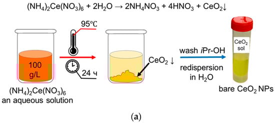 - Shcherbakov, A.B.; Teplonogova, M.A.; Ivanova, O.S.; Shekunova, T.O.; Ivonin, I.V.; Baranchikov, A.Y.; Ivanov, V.K. Facile method for fabrication of surfactant-free concentrated CeO2 sols. Mater. Res. Express 2017, 4, 055008. [Google Scholar] [CrossRef]