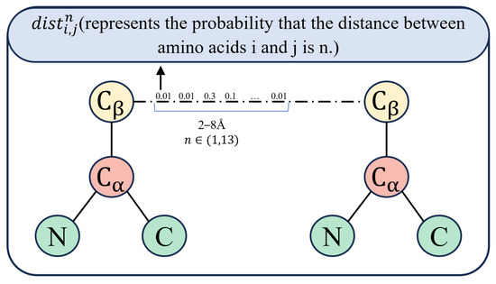 The adjacency matrix represents the relationships between nodes in the graph, which, in this study, corresponds to the relationship between two amino acids. To more accurately capture this relationship, we construct the adjacency matrix using predicted contact maps from trRosetta [27]. First, we query the sequence against the uniclust30_2018_08 database using the HHblits tool [28], generating a multiple sequence alignment (MSA). The MSA is then input into the trRosetta tool to predict the distributions of distances and orientations between residue pairs. The distance information represents the spatial relationship between two atoms in the contact map. Distances ranging from 2 Å to 20 Å are divided into 36 segments, with each representing a 0.5 Å increment, with an additional segment for residues that do not come into contact. TrRosetta predicts the contact probability for residues within each segment. In previous work, the segment with the highest probability among all equally spaced segments was used to represent residue distance; when the distance between two atoms in the contact map is less than or equal to a predefined threshold, it indicates that the residues are in contact [27]. However, this approach is not optimal. Therefore, the method proposed in this study sums the probabilities of all segments corresponding to distances between 2 and 8 Å to represent the contact probability between residues, and uses this to calculate the adjacency matrix
