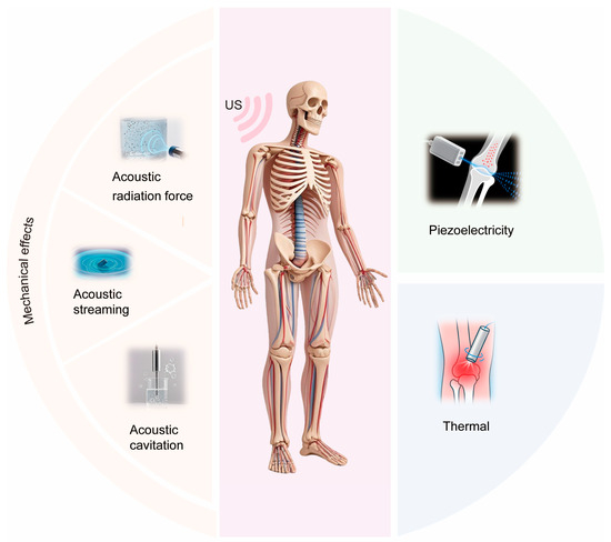 - Bader, K.B.; Padilla, F.; Haworth, K.J.; Ellens, N.; Dalecki, D.; Miller, D.L.; Wear, K.A.; Bioeffects Committee of the American Institute of Ultrasound in Medicine. Overview of Therapeutic Ultrasound Applications and Safety Considerations: 2024 Update. J. Ultrasound Med. 2025, 44, 381–433. [Google Scholar] [CrossRef] [PubMed]