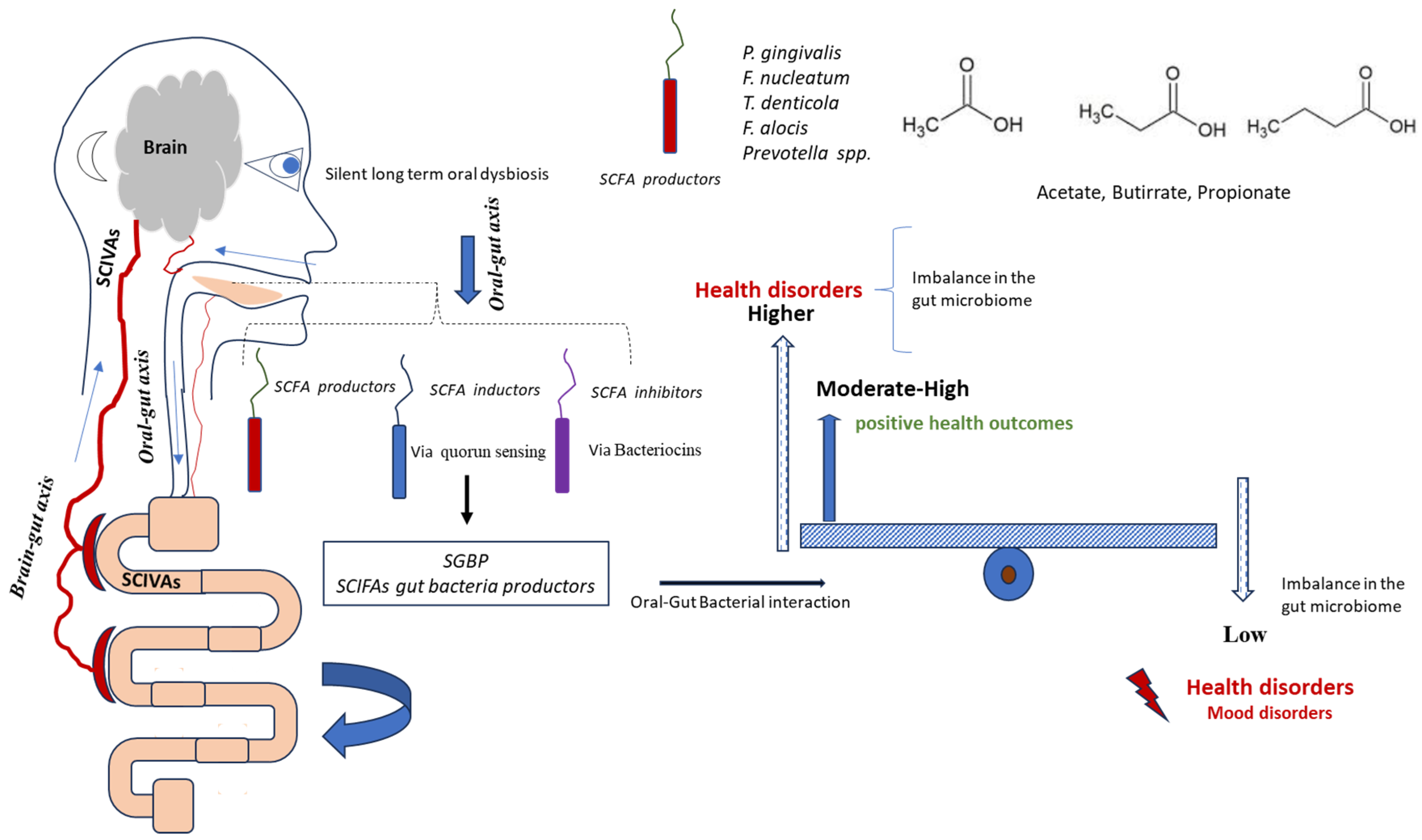 - Bowland, G.B.; Weyrich, L.S. The Oral-Microbiome-Brain Axis and Neuropsychiatric Disorders: An Anthropological Perspective. Front. Psychiatry 2022, 13, 810008. [Google Scholar] [CrossRef]