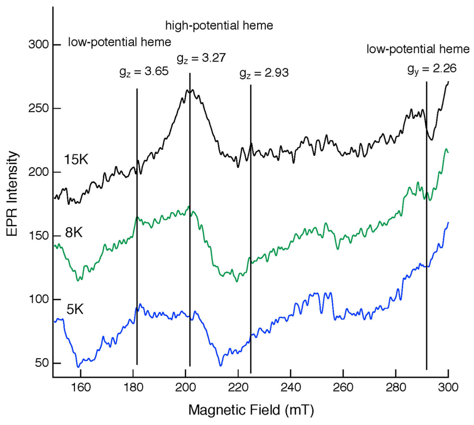- Tsubaki, M.; Nakayama, M.; Okuyama, E.; Ichikawa, Y.; Hori, H. Existence of two heme B centers in cytochrome b561 from bovine adrenal chromaffin vesicles as revealed by a new purification procedure and EPR spectroscopy. J. Biol. Chem. 1997, 272, 23206–23210. [Google Scholar] [CrossRef]