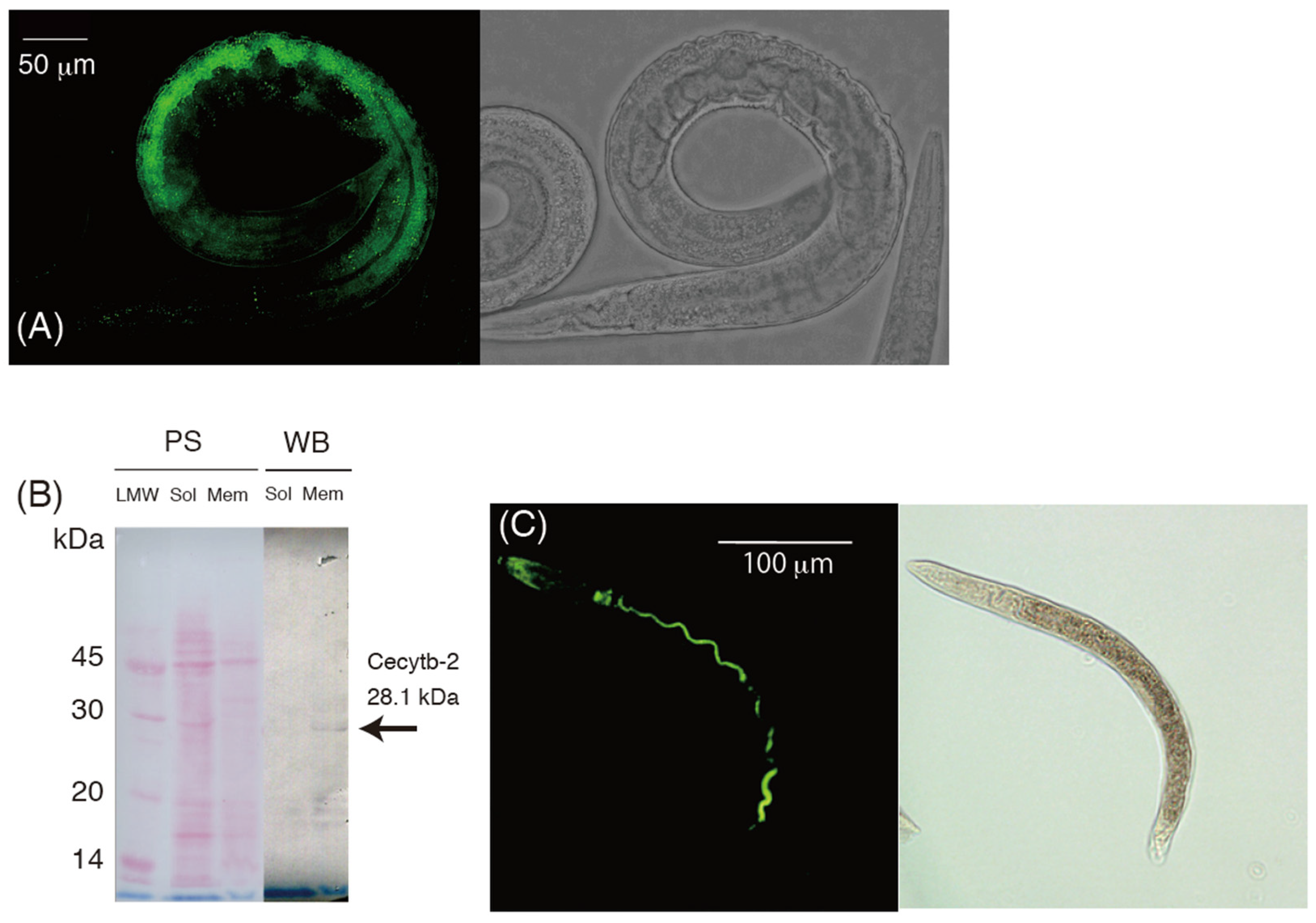 APA StyleMiura, M., Fukuzawa, M., Hori, H., Kobayashi, K., Recuenco, M. C., & Tsubaki, M. (2025). Cecytb-2, a Cytochrome b561 Homolog, Functions as an Ascorbate-Specific Transmembrane Ferric Reductase at Intestinal Lumens of Caenorhabditis elegans. Biomolecules, 15(10), 1385. https://doi.org/10.3390/biom15101385