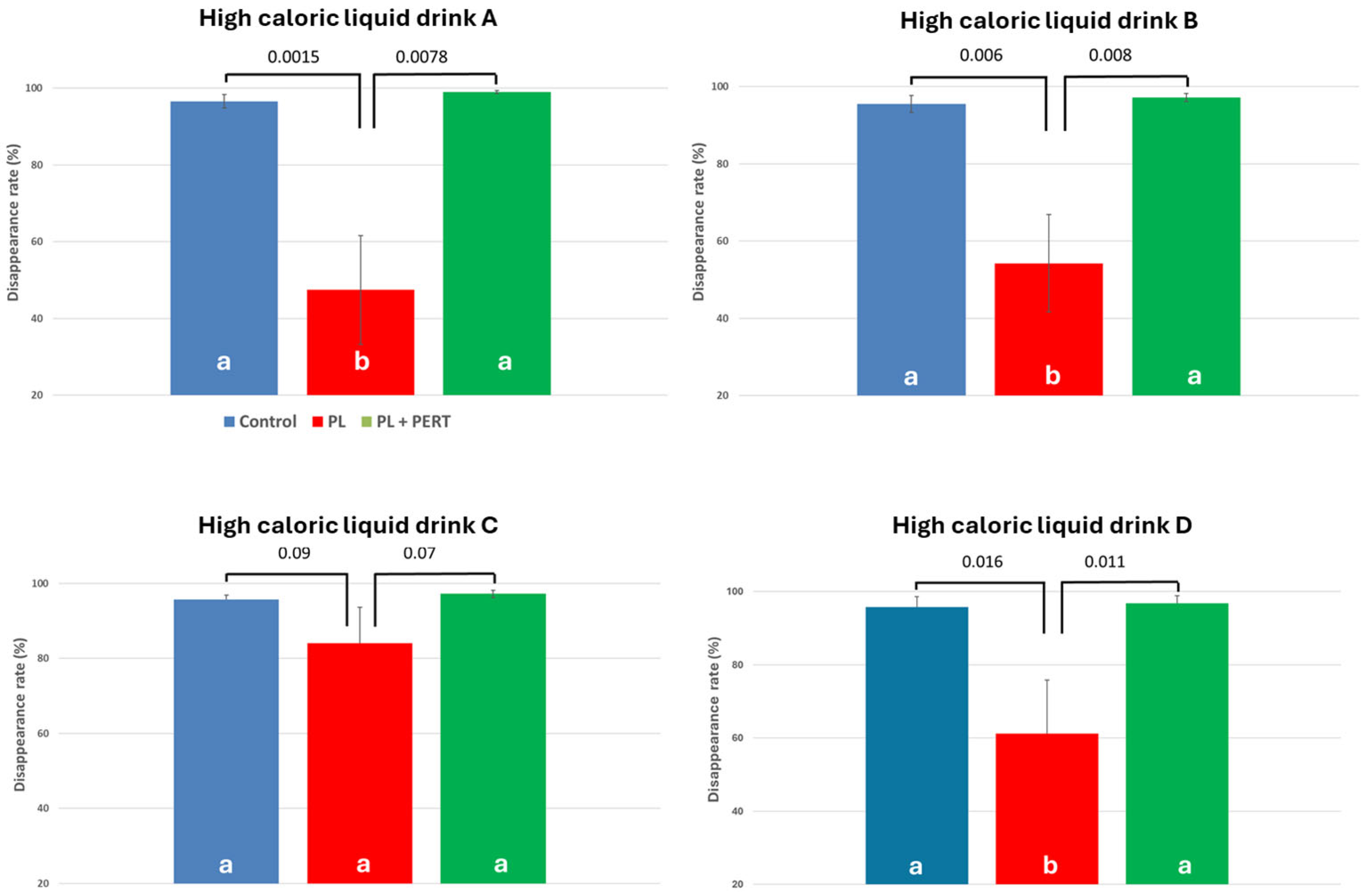 - Hauenschild, A.; Ewald, N.; Klauke, T.; Liebchen, A.; Bretzel, R.G.; Kloer, H.; Hardt, P.D. Effect of liquid pancreatic enzymes on the assimilation of fat in different liquid formula diets. J. Parenter. Enteral Nutr. 2008, 32, 98–100. [Google Scholar] [CrossRef]