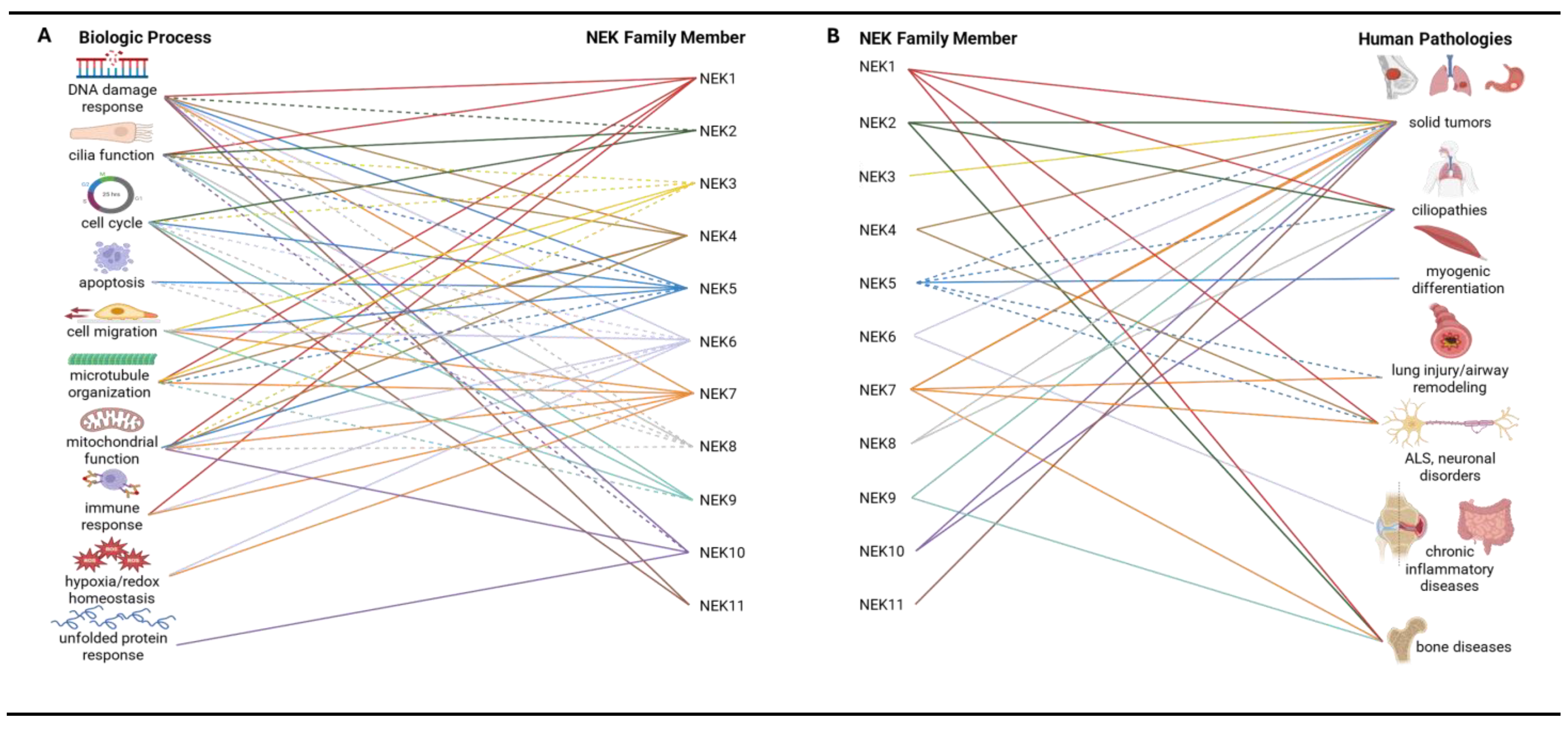 | Disease | NEK1 | NEK2 | NEK3 | NEK4 | NEK5 | NEK6 | NEK7 | NEK8 | NEK9 | NEK10 | NEK11 |