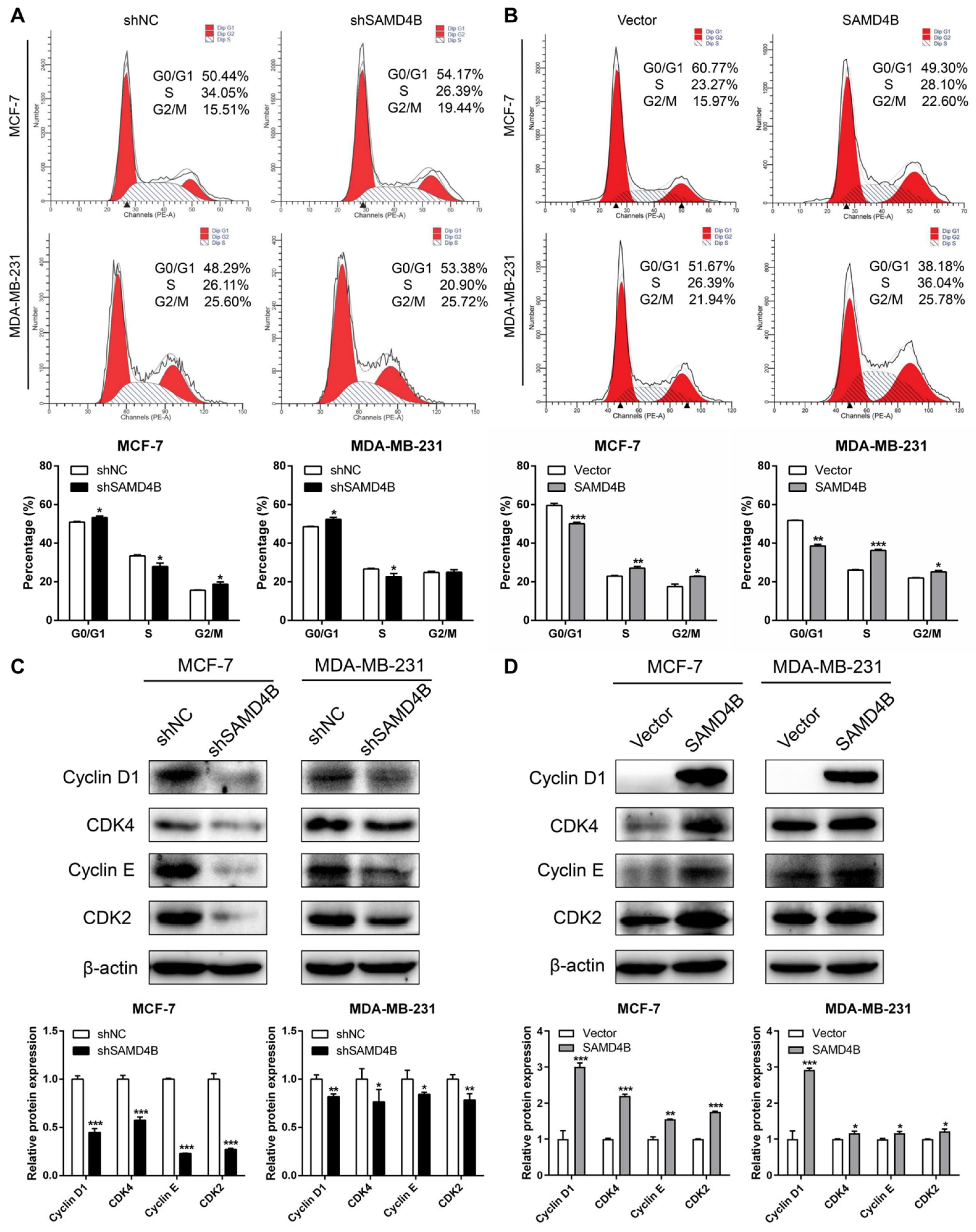 3.3. SAMD4B Promotes G1-S Phase Transition of Breast Cancer Cells