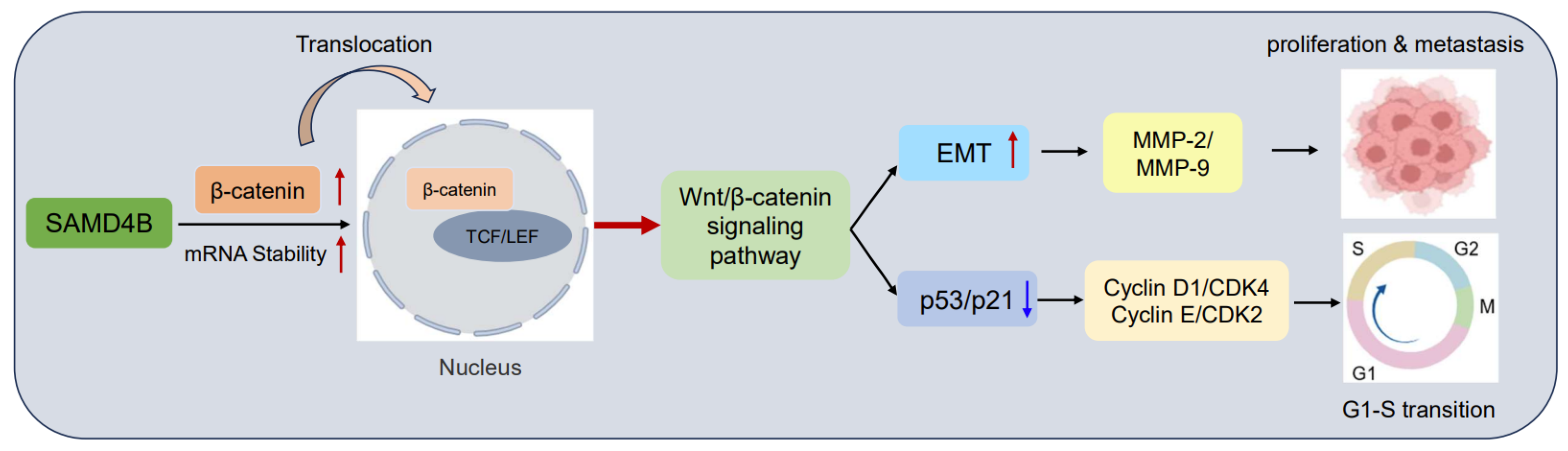 Li, J.-H.; Wang, X.-Y.; Song, H.-X.; Nie, X.-F.; Zhang, L.-N. Oncogenic Role of SAMD4B in Breast Cancer Progression by Activating Wnt/β-Catenin Pathway. Biomolecules 2025, 15, 1423. https://doi.org/10.3390/biom15101423