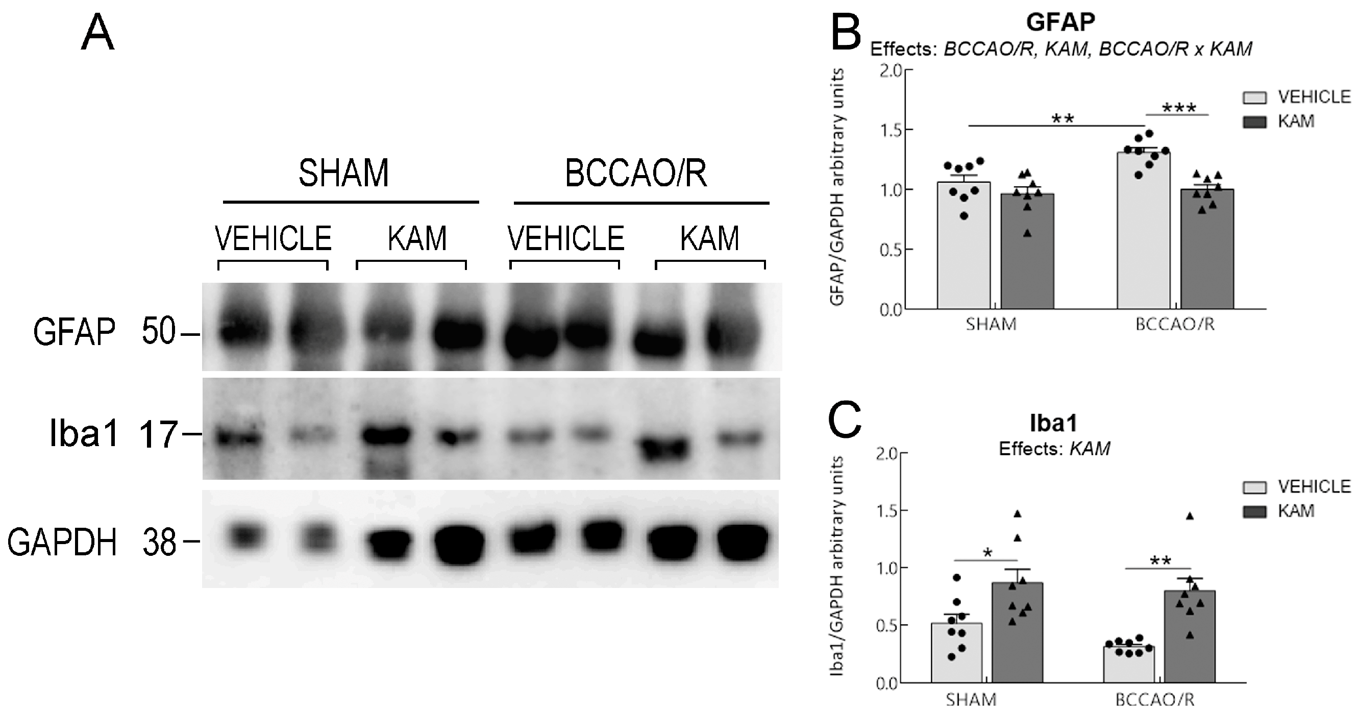 2.6. Western Blot Assays for CB1R, CB2R, COX-2, PPARα, GFAP, and Iba1