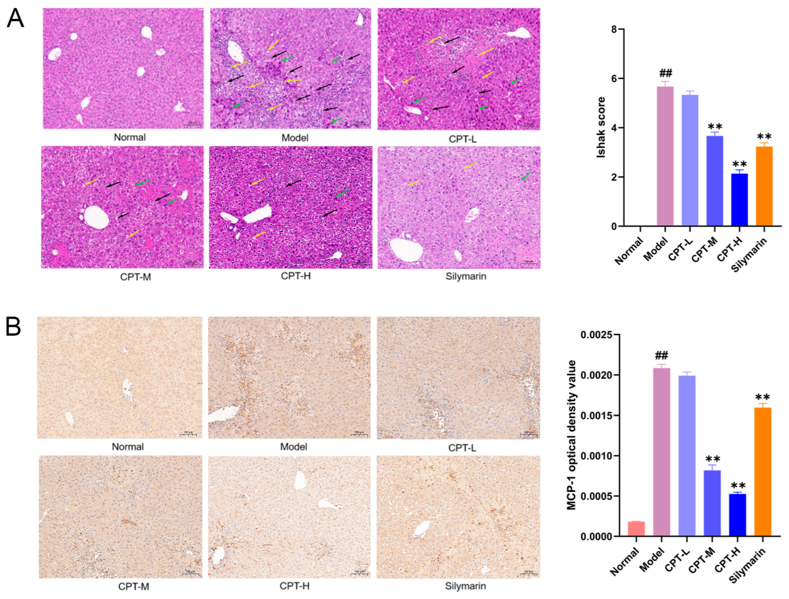 3.1. Effects of CPT on Mice with ALI Induced by CCl4
