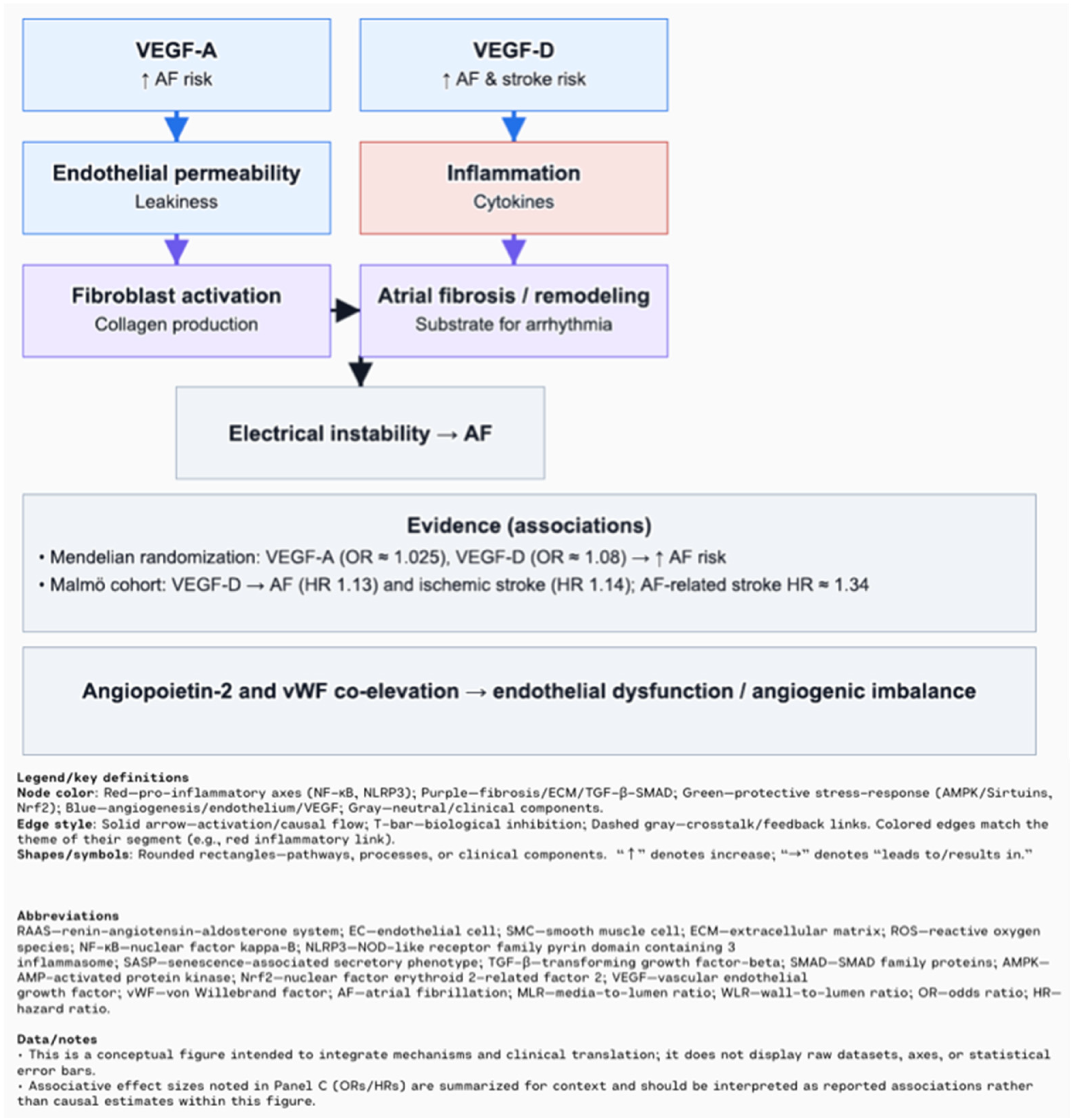 - Sharma, N.; Khatib, M.N.; Roopashree, R.; Kaur, M.; Srivastava, M.; Barwal, A.; Siva Prasad, G.V.; Rajput, P.; Syed, R.; Kundra, K.; et al. Association between Vascular Endothelial Growth Factor and Atrial Fibrillation: A Systematic Review. BMC Cardiovasc. Disord. 2025, 25, 5. [Google Scholar] [CrossRef]
