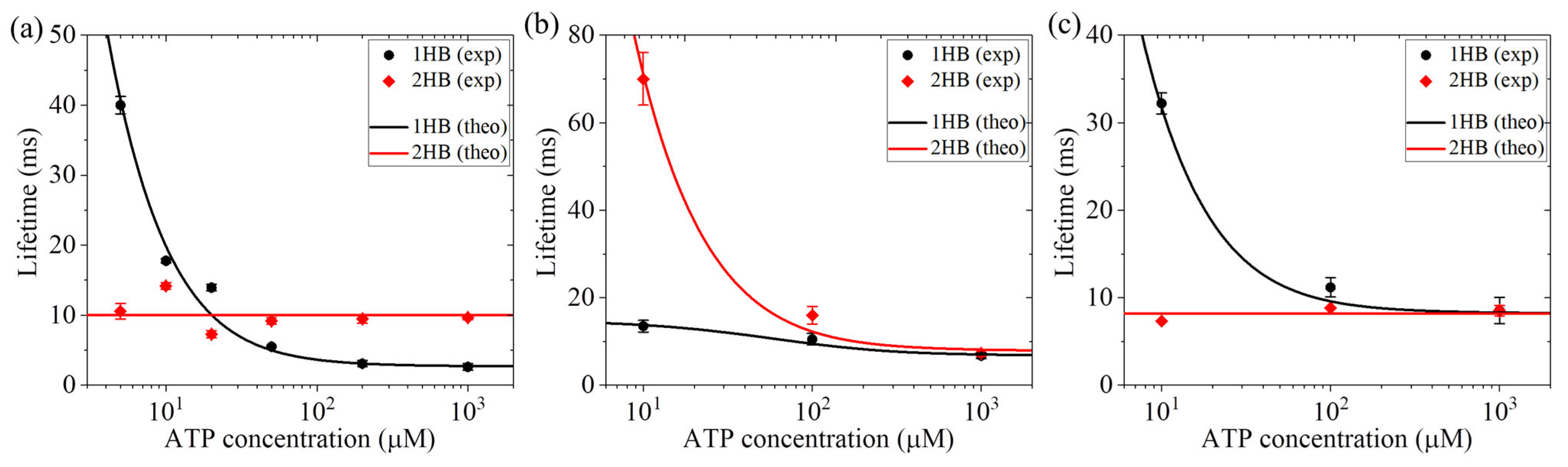 7.1. Explanation of the Conflicting Experimental Results on ATP Binding in 1HB or 2HB State