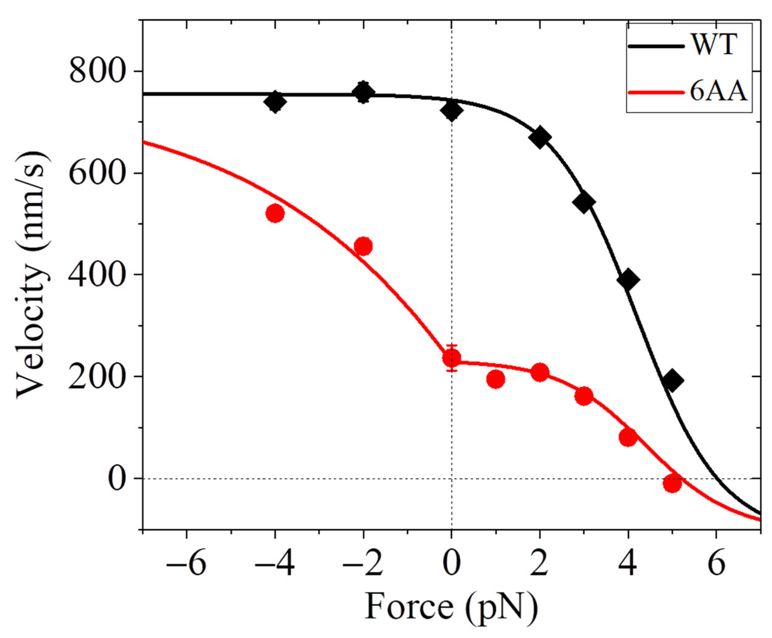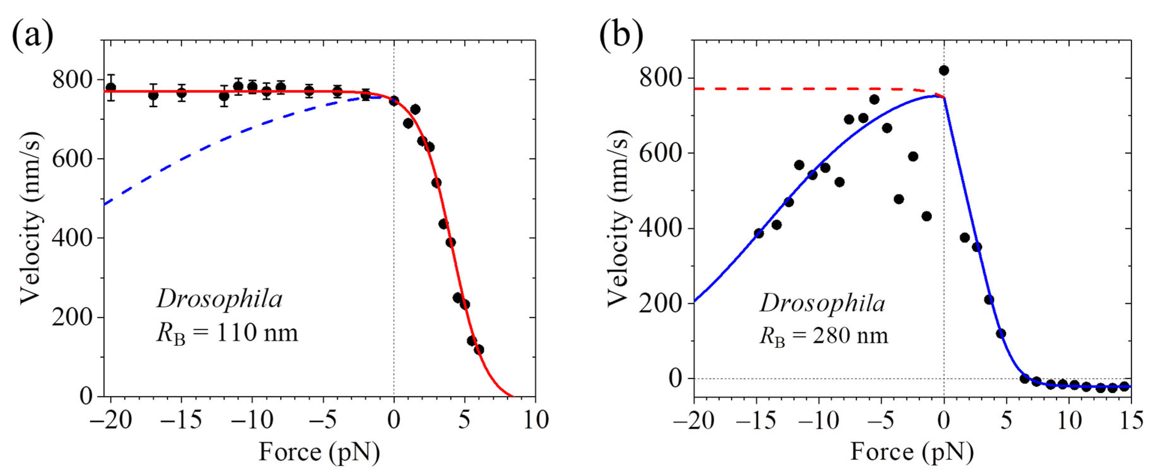 - Kondo, Y.; Kazuo Sasaki, K.; Higuchi, H. Fast backward steps and detachment of single kinesin molecules measured under a wide range of loads. Traffic 2023, 24, 463–474. [Google Scholar] [CrossRef]