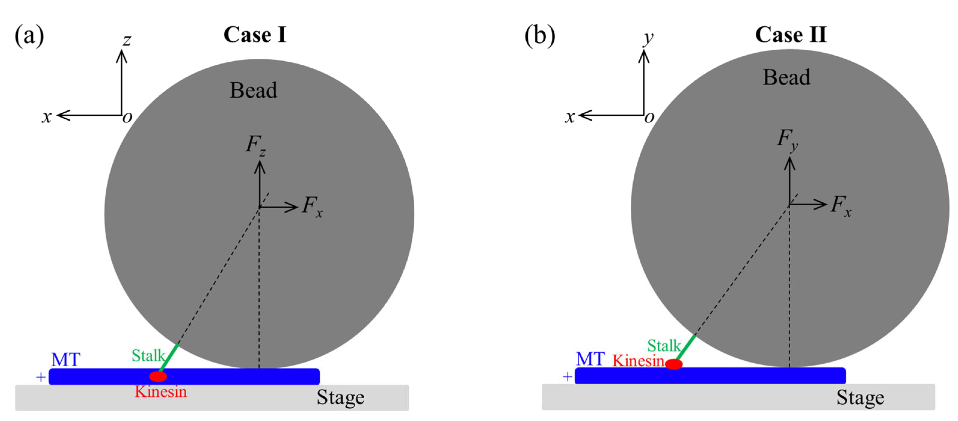 - Xie, P. Effects of stalk orientation and size of trapped bead on force–velocity relation of kinesin motor determined using single molecule optical trapping methods. J. Biol. Phys. 2025, 51, 7. [Google Scholar] [CrossRef]