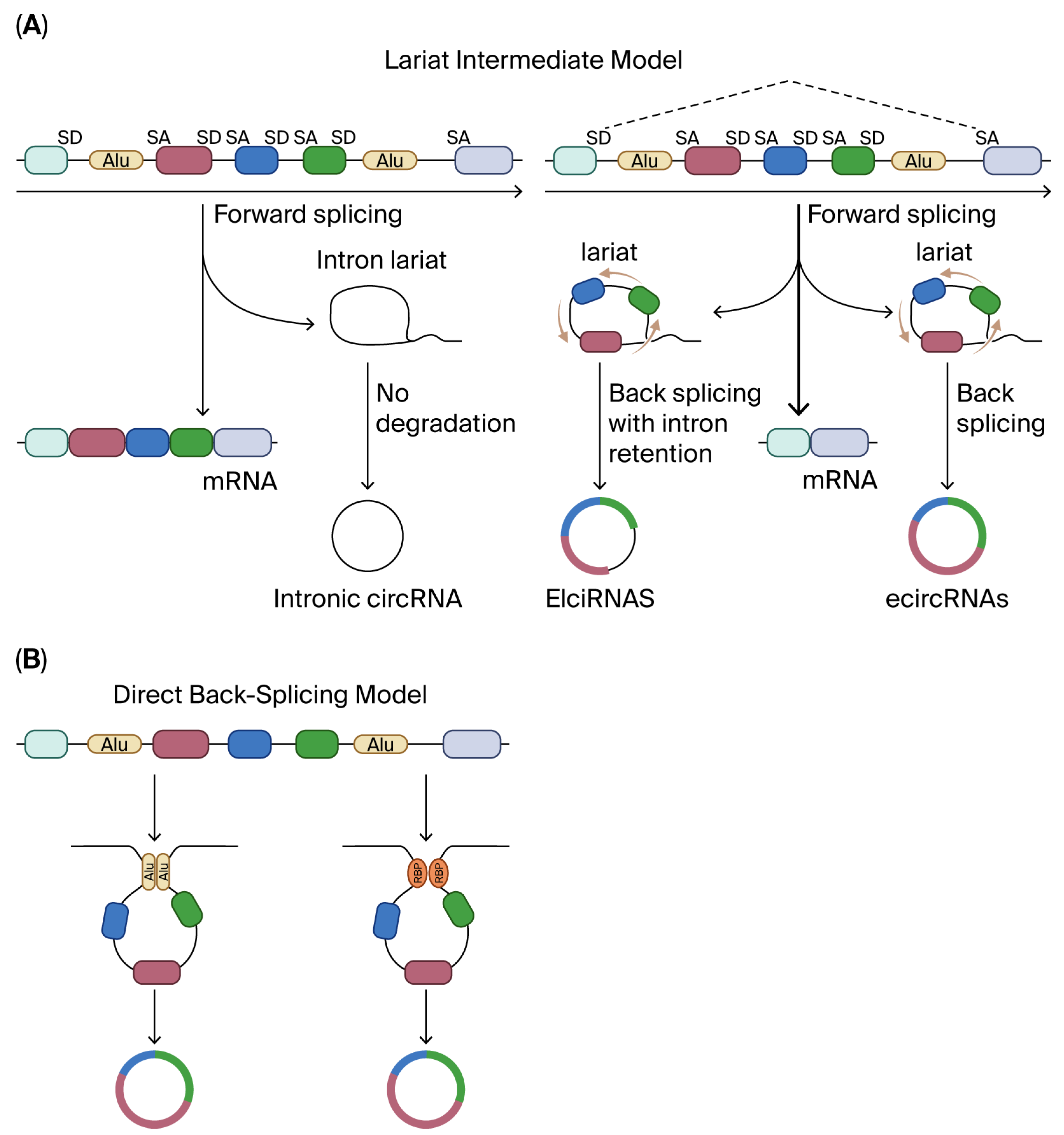 - Li, Z.; Huang, C.; Bao, C.; Chen, L.; Lin, M.; Wang, X.; Zhong, G.; Yu, B.; Hu, W.; Dai, L. Exon-intron circular RNAs regulate transcription in the nucleus. Nat. Struct. Mol. Biol. 2015, 22, 256–264. [Google Scholar] [CrossRef] [PubMed]