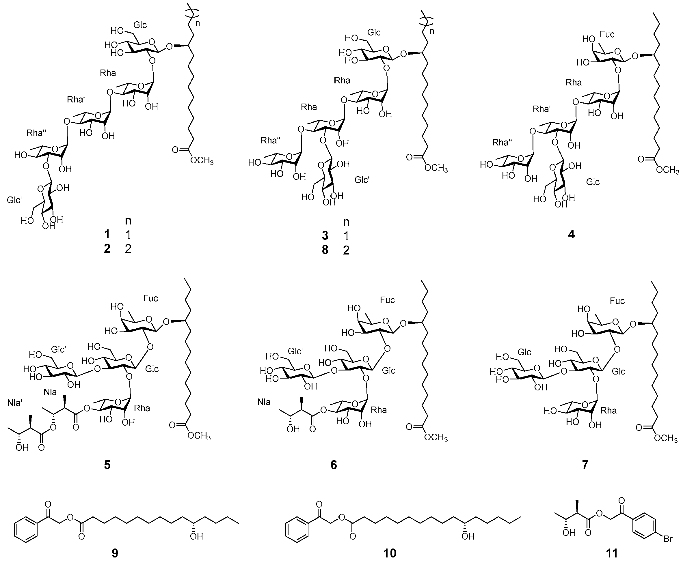 2.4. Alkaline Hydrolysis of Resin Glycoside Fraction