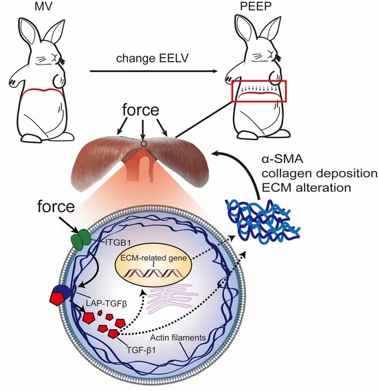 Gong, J.; Jia, J.; He, R.; Yu, X.; Jiang, Y.; Shen, W.; Qian, X.; Xu, P.; Xu, Y.; Ge, H. High PEEP Activates ITGB1, Inducing Diaphragm Fibrosis During Prolonged Mechanical Ventilation. Biomolecules 2025, 15, 1466. https://doi.org/10.3390/biom15101466