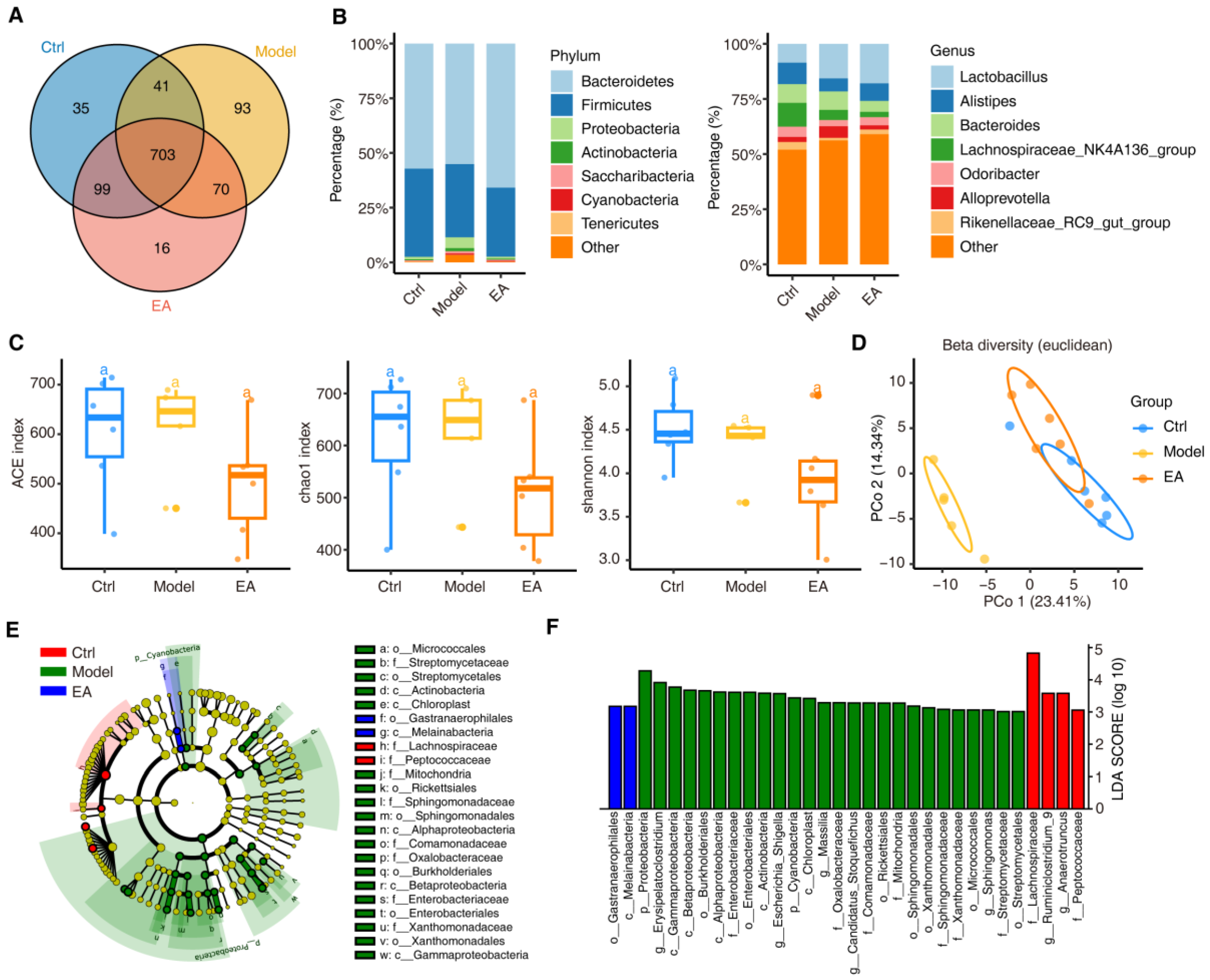 3.4. EA Influences Metabolic Function by Regulating Gut Microbiota
