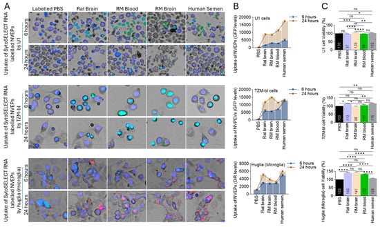 3.3. Species-Independent Internalization of NVEPs by Human Cells