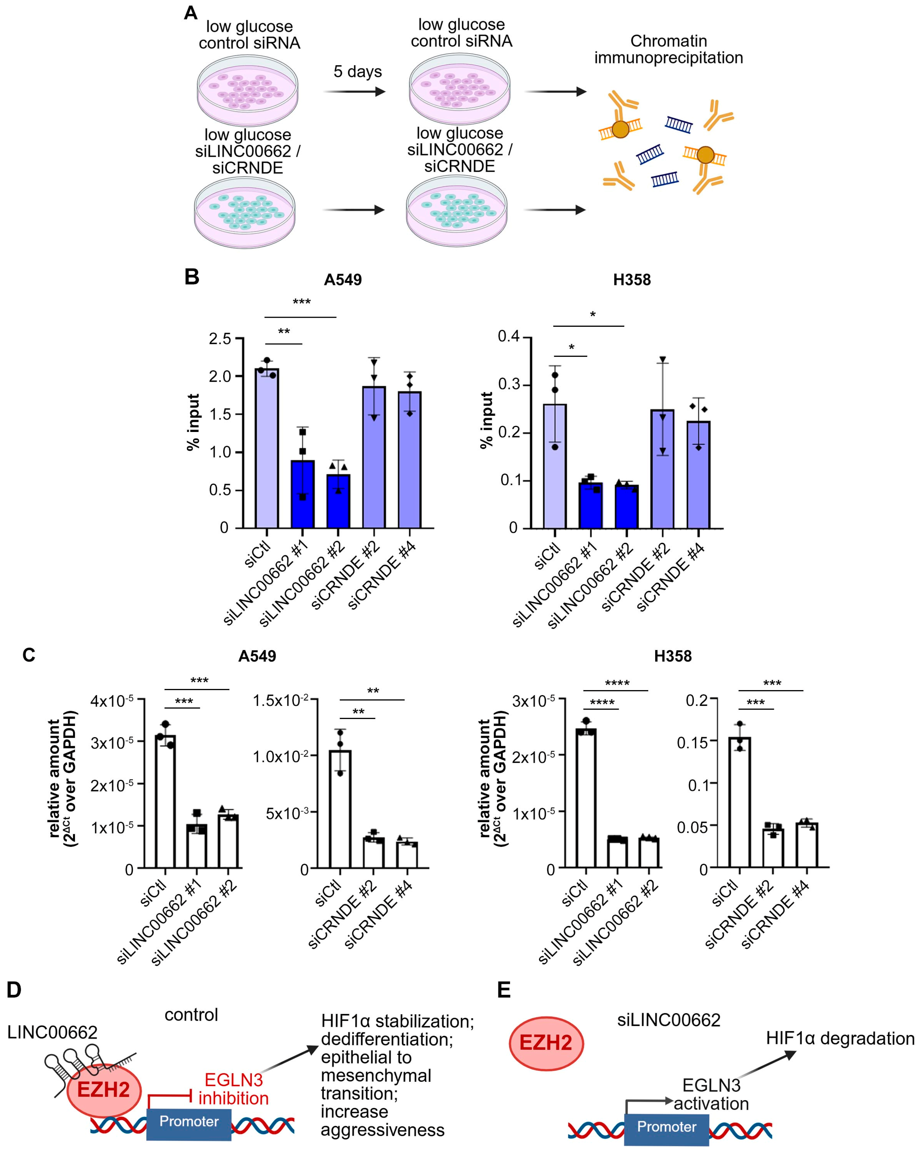 3.4. lncRNA LINC00662 Promotes EZH2 Recruitment on Target Gene Promoter in Low Glucose
