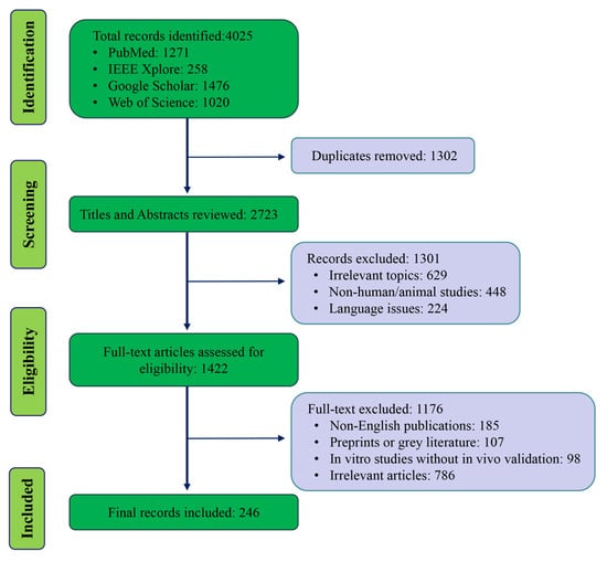 A total of 246 articles were identified and screened based on relevance and inclusion criteria. The screening process involved an initial review of titles and abstracts, followed by full-text screening to confirm eligibility. A PRISMA-like flow diagram outlining the study selection process is provided below to increase transparency (Figure 1).