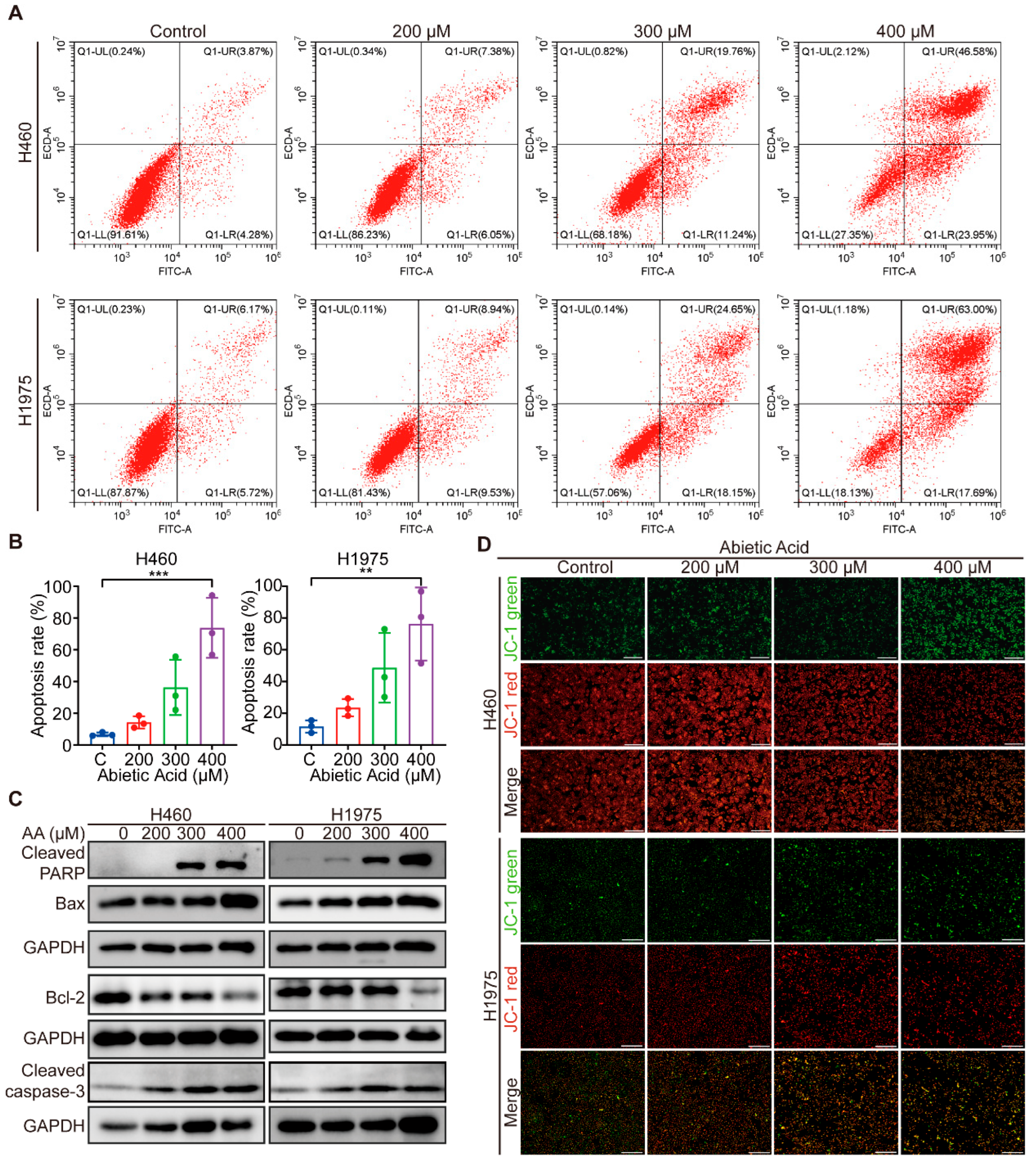3.2. Abietic Acid Induces Mitochondrial-Related Apoptosis in Lung Cancer Cells