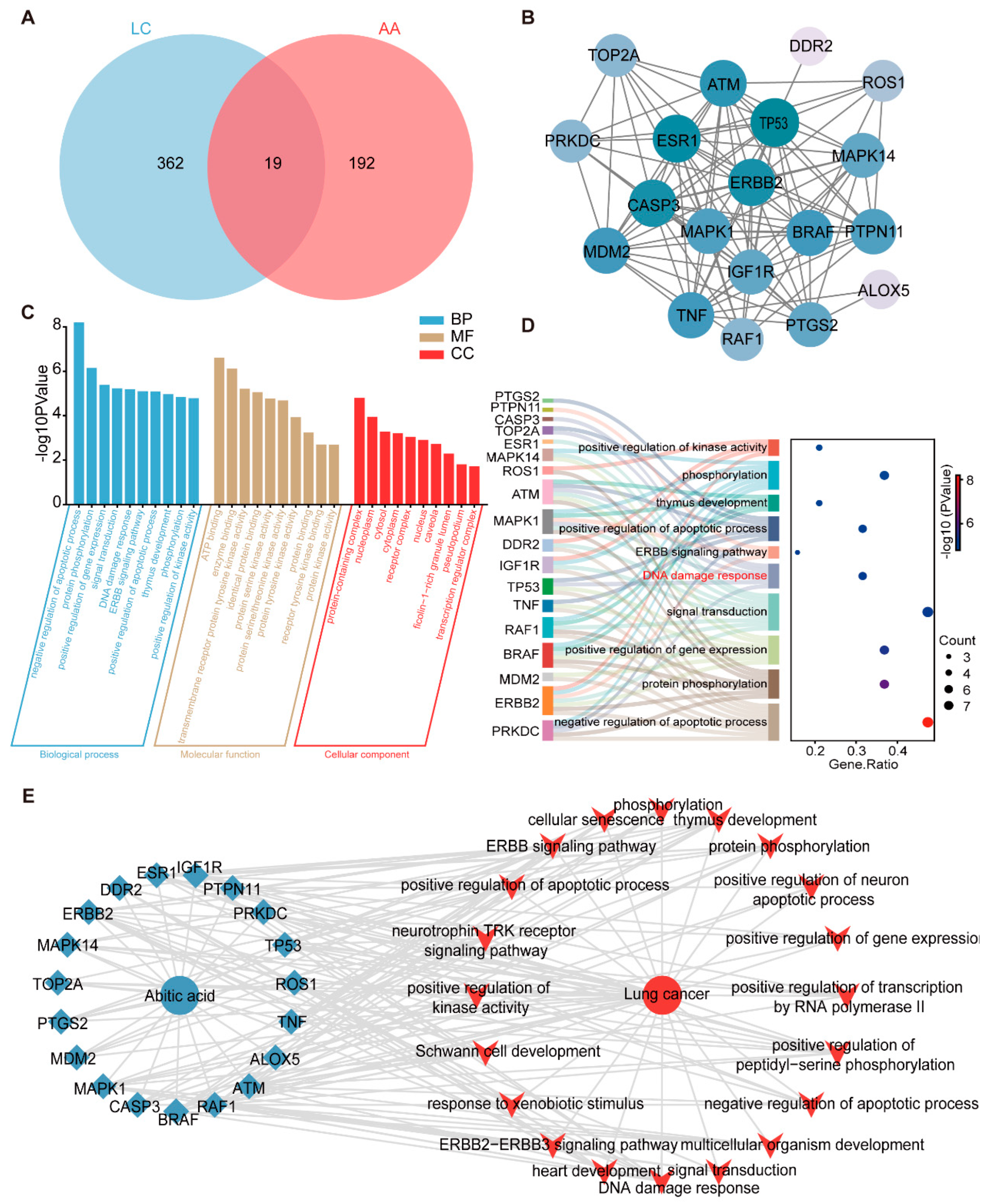 2.7. Target Exploration of Abietic Acid in Lung Cancer