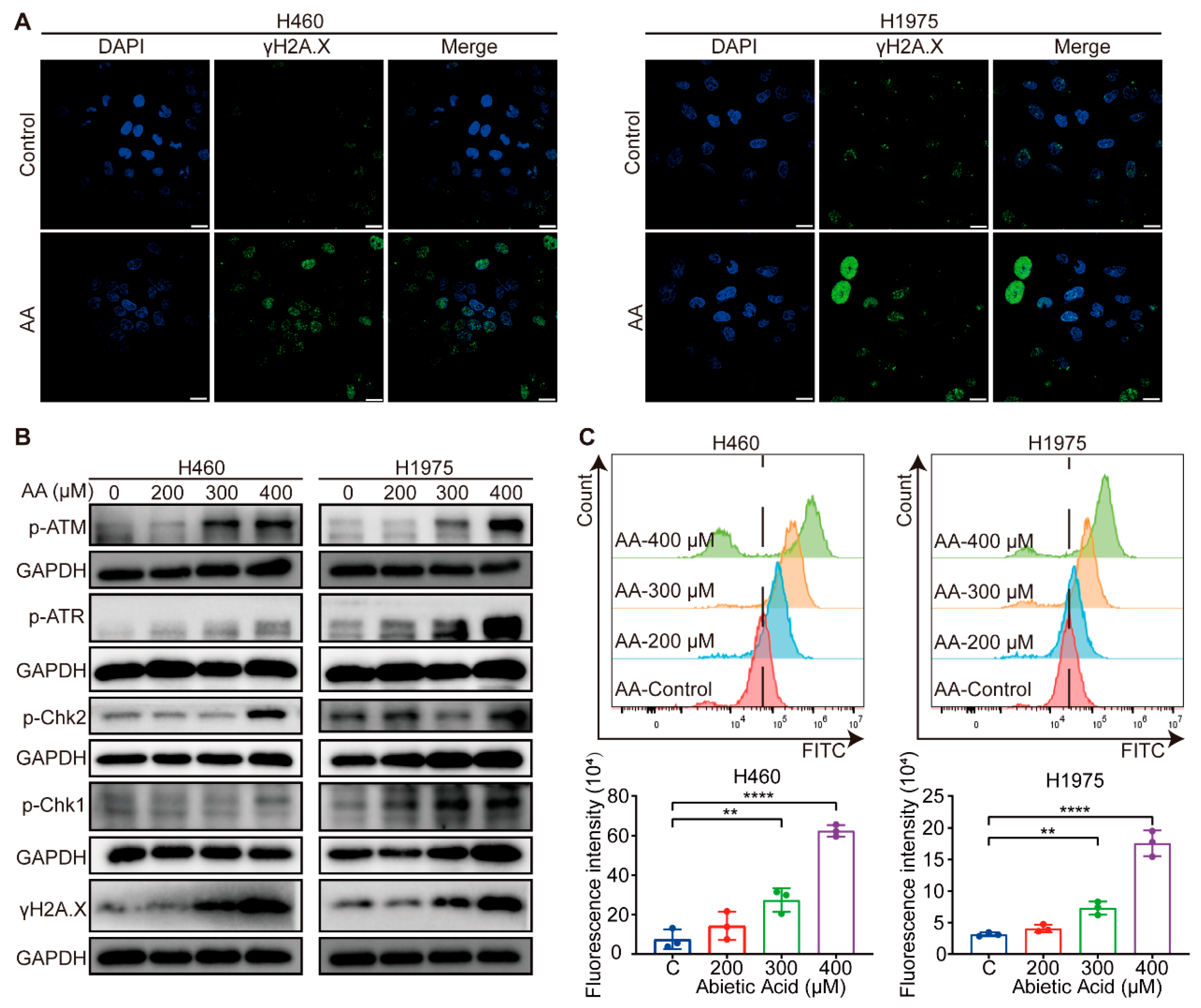 3.4. Abietic Acid Induces DNA Damage in Lung Cancer Cells