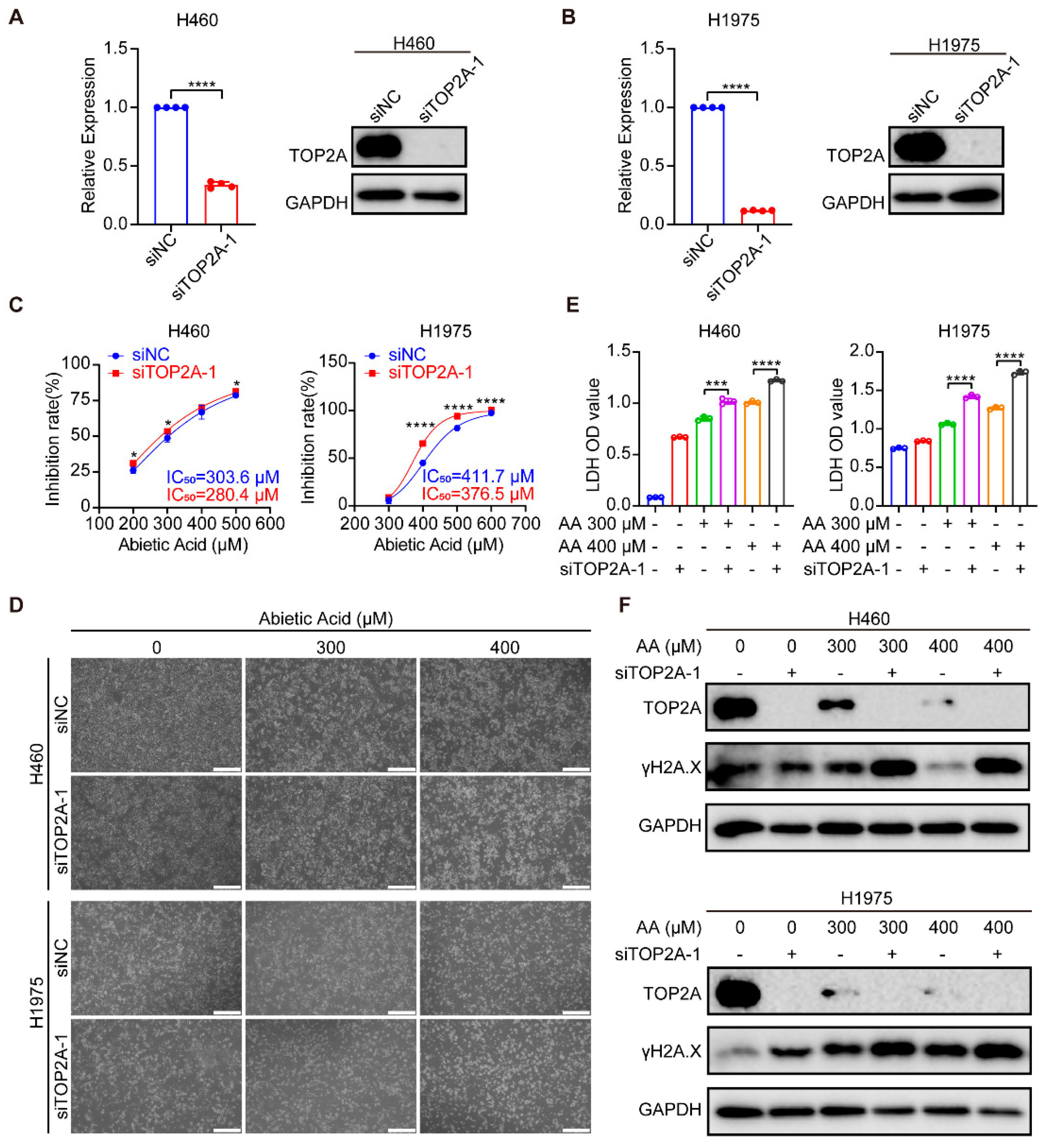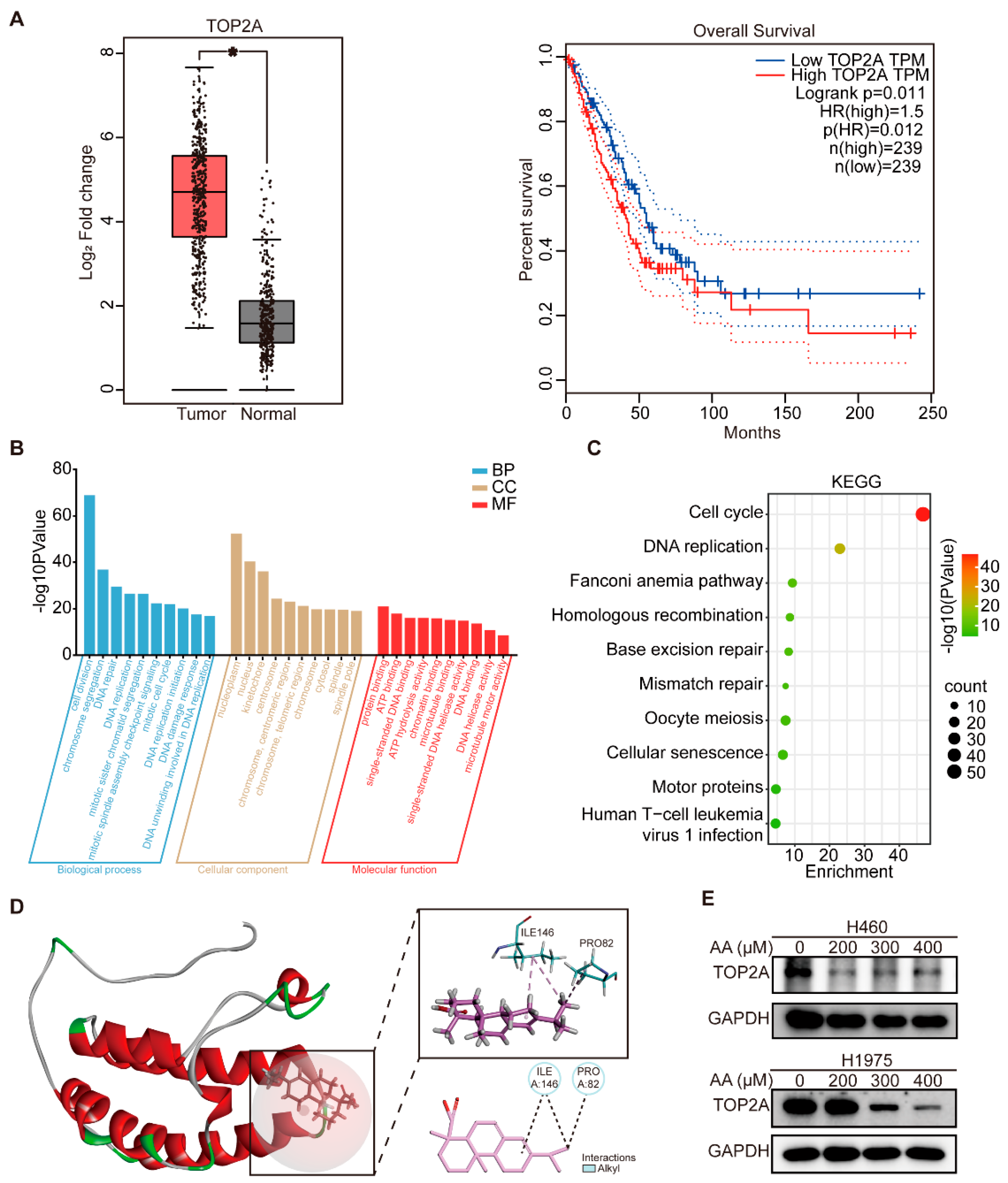 3.5. Abietic Acid Potentially Targets TOP2A to Trigger DNA Damage in Lung Cancer Cells