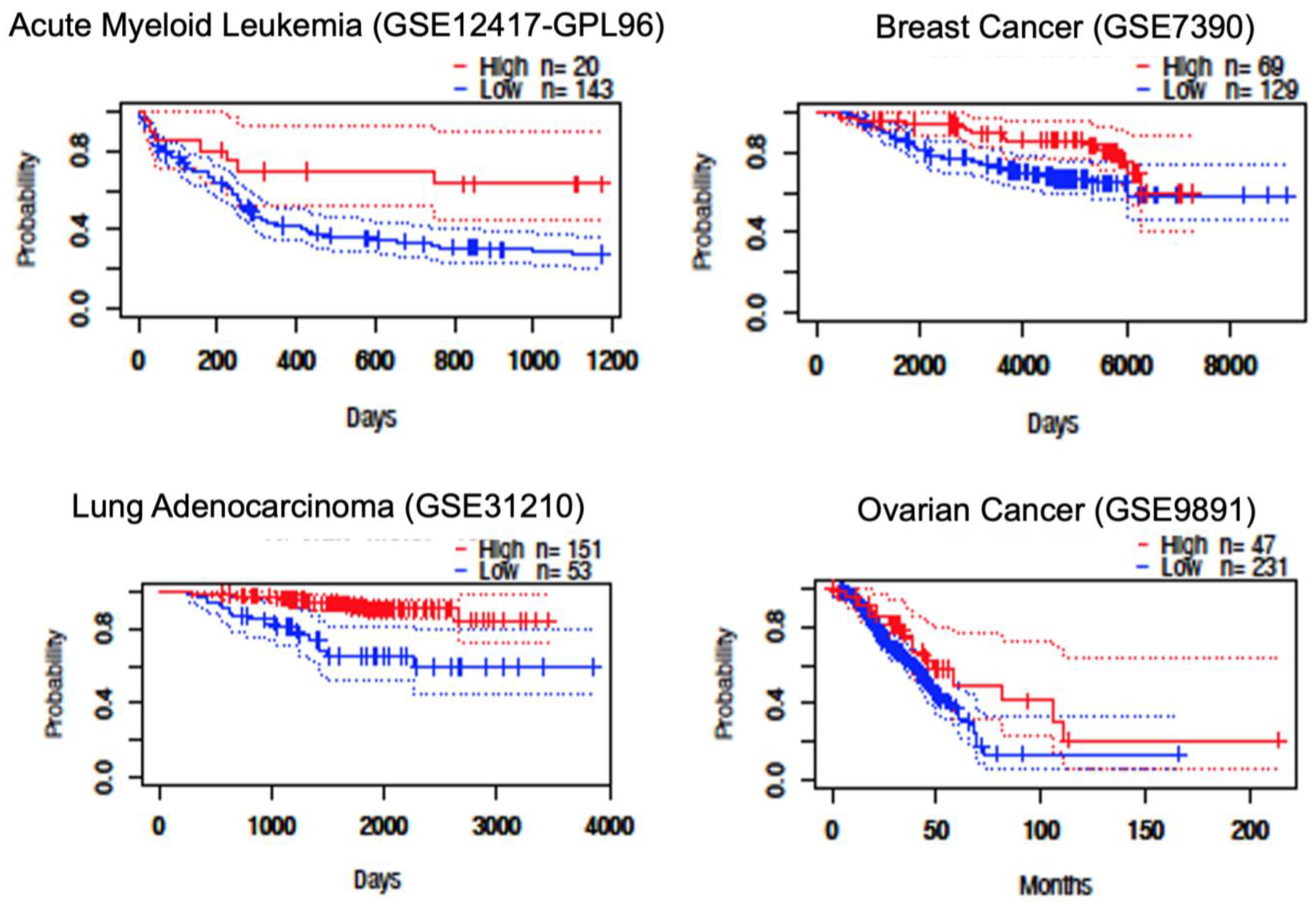 17]. This database aggregates microarray datasets from Gene Expression Omnibus (GEO), ArrayExpress, and independent studies. Datasets were selected based on predefined criteria: only those with overall survival endpoints were included, while duplicates were excluded, retaining probes with the smallest log-rank