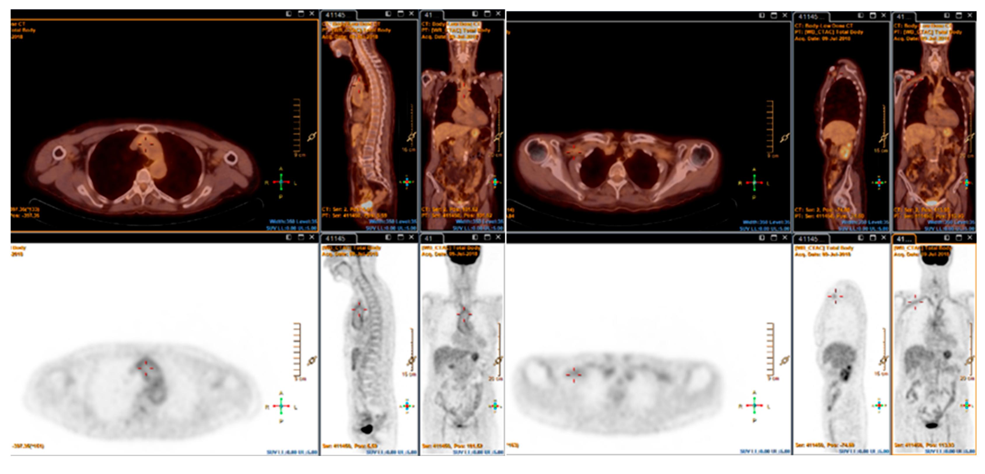 - Yamashita, H.; Kubota, K.; Mimori, A. Clinical value of whole-body PET/CT in patients with active rheumatic diseases. Arthritis Res. Ther. 2014, 16, 423. [Google Scholar] [CrossRef]