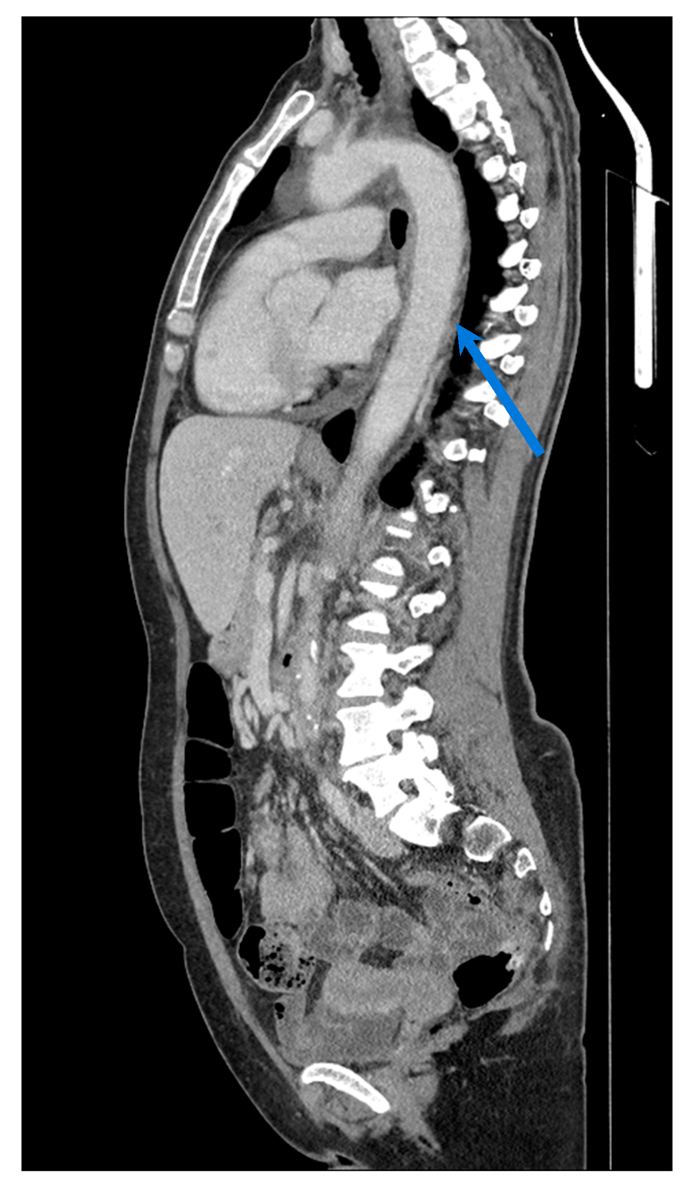 - Kebed, D.T.; Bois, J.P.; Connolly, H.M.; Scott, C.G.; Bowen, J.M.; Warrington, K.J.; Makol, A.; Greason, K.L.; Schaff, H.V.; Anavekar, N.S. Spectrum of Aortic Disease in the Giant Cell Arteritis Population. Am. J. Cardiol. 2018, 121, 501–508. [Google Scholar] [CrossRef]