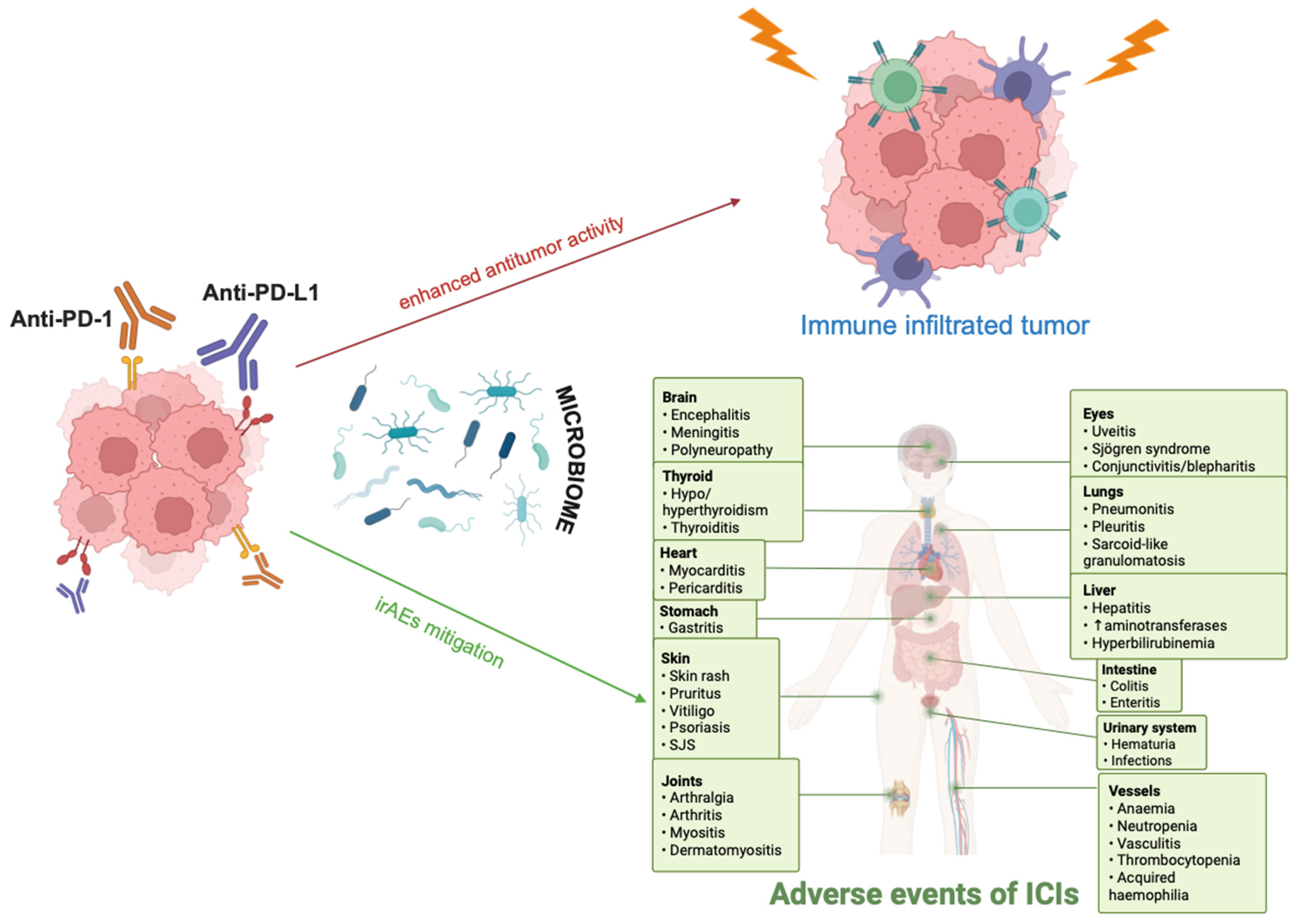 - Mager, L.F.; Burkhard, R.; Pett, N.; Cooke, N.C.A.; Brown, K.; Ramay, H.; Paik, S.; Stagg, J.; Groves, R.A.; Gallo, M.; et al. Microbiome-Derived Inosine Modulates Response to Checkpoint Inhibitor Immunotherapy. Science 2020, 369, 1481–1489. [Google Scholar] [CrossRef]