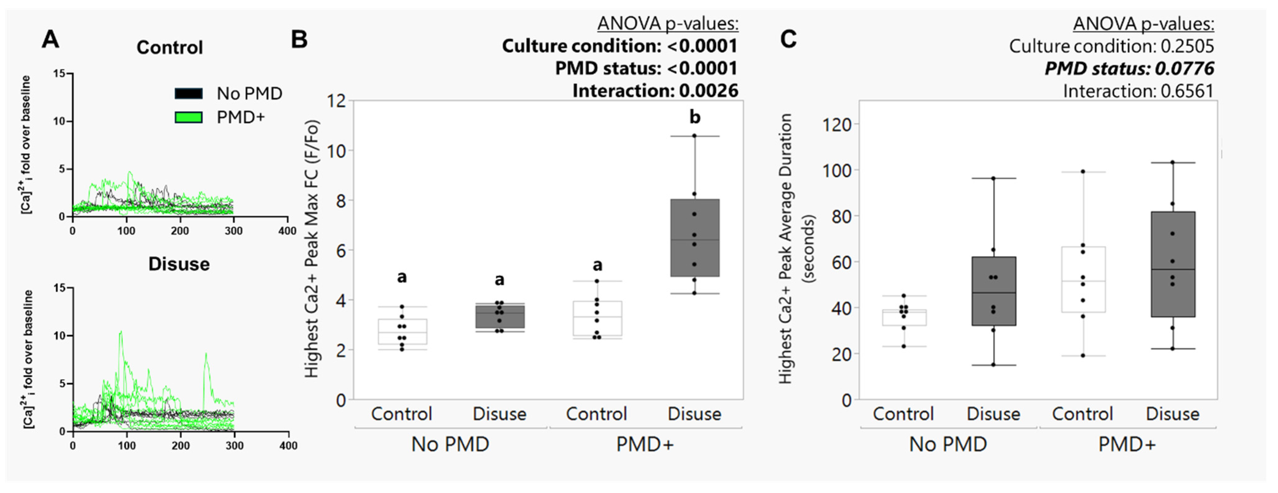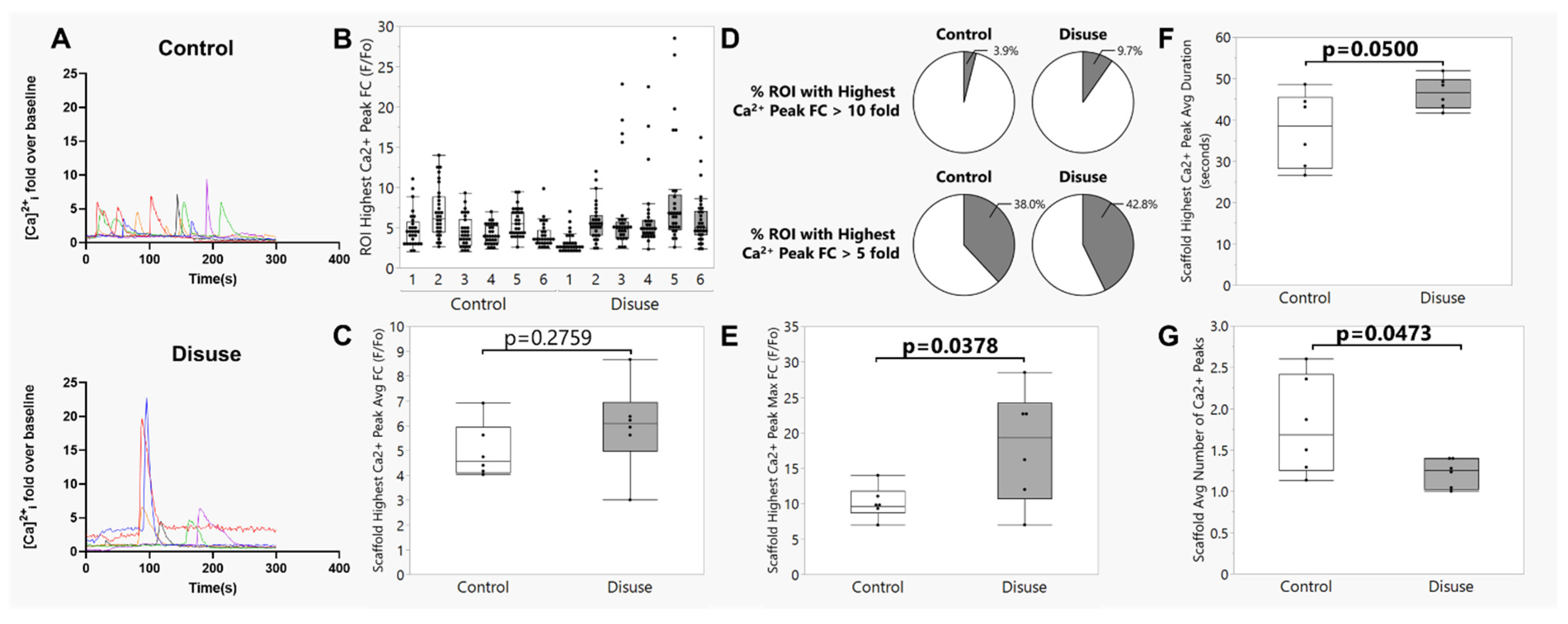 3.3. Exposure to Disuse Amplifies Calcium Signaling Responses upon Reloading