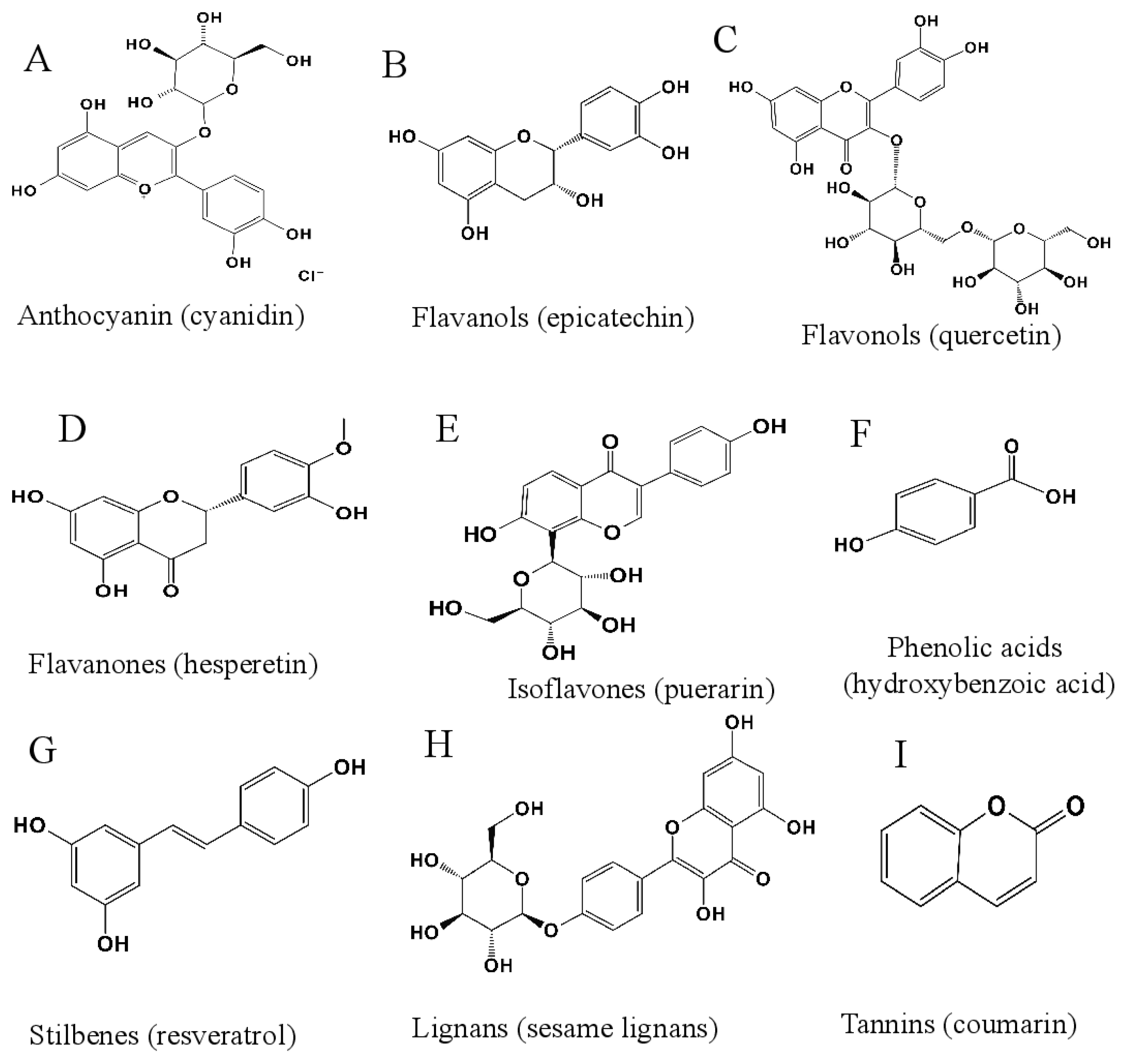 3.1. Classification and Structural Characteristics of Polyphenols and Their Derivatives