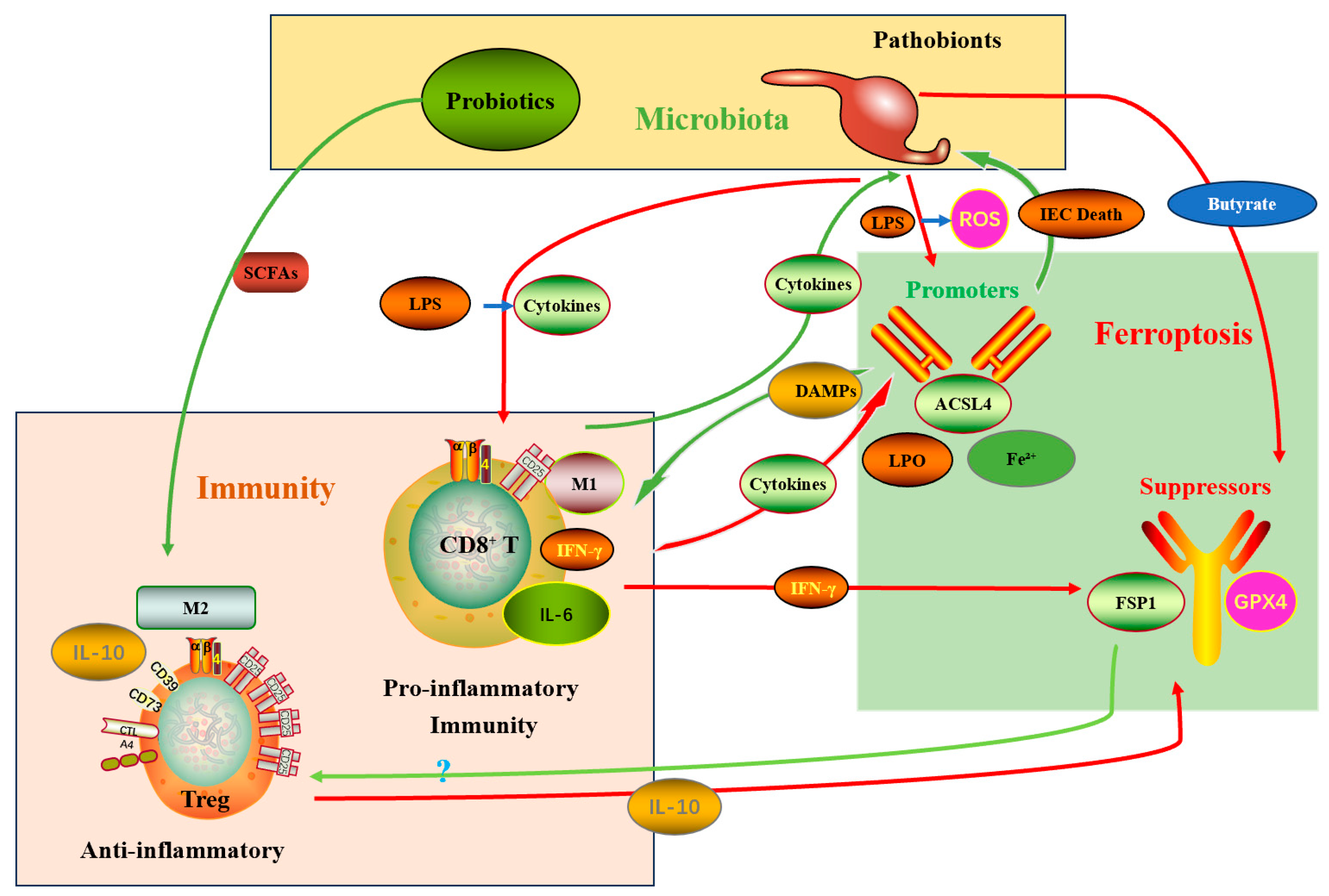 - Jian, J.; Wei, J. Ferroptosis: A New Pathway in the Interaction between Gut Microbiota and Multiple Sclerosis. Front. Biosci. 2025, 30, 26265. [Google Scholar] [CrossRef]