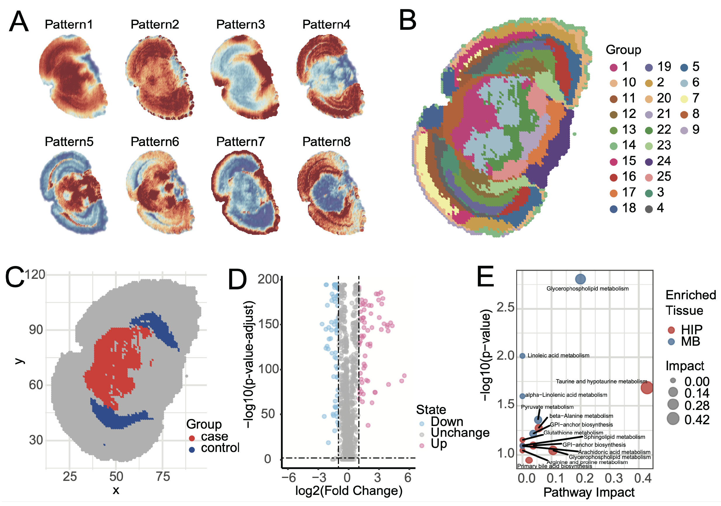 42] revealed that these metabolic features were highly consistent with regional functions. Metabolites upregulated in HIP (e.g., taurine and sphingolipids) were enriched in pathways such as taurine metabolism, sphingolipid metabolism, and glycerophospholipid metabolism (