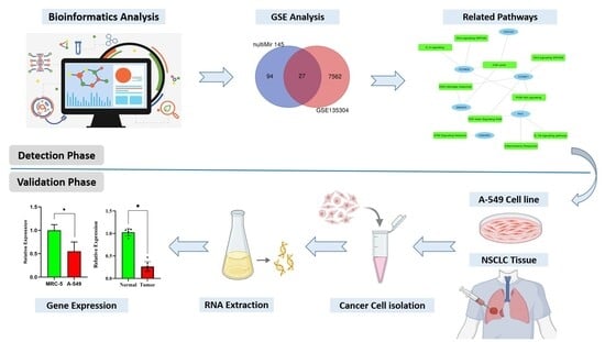 3.7. miR-145 Downregulation in NSCLC Tissues and Cell Lines via RT-qPCR