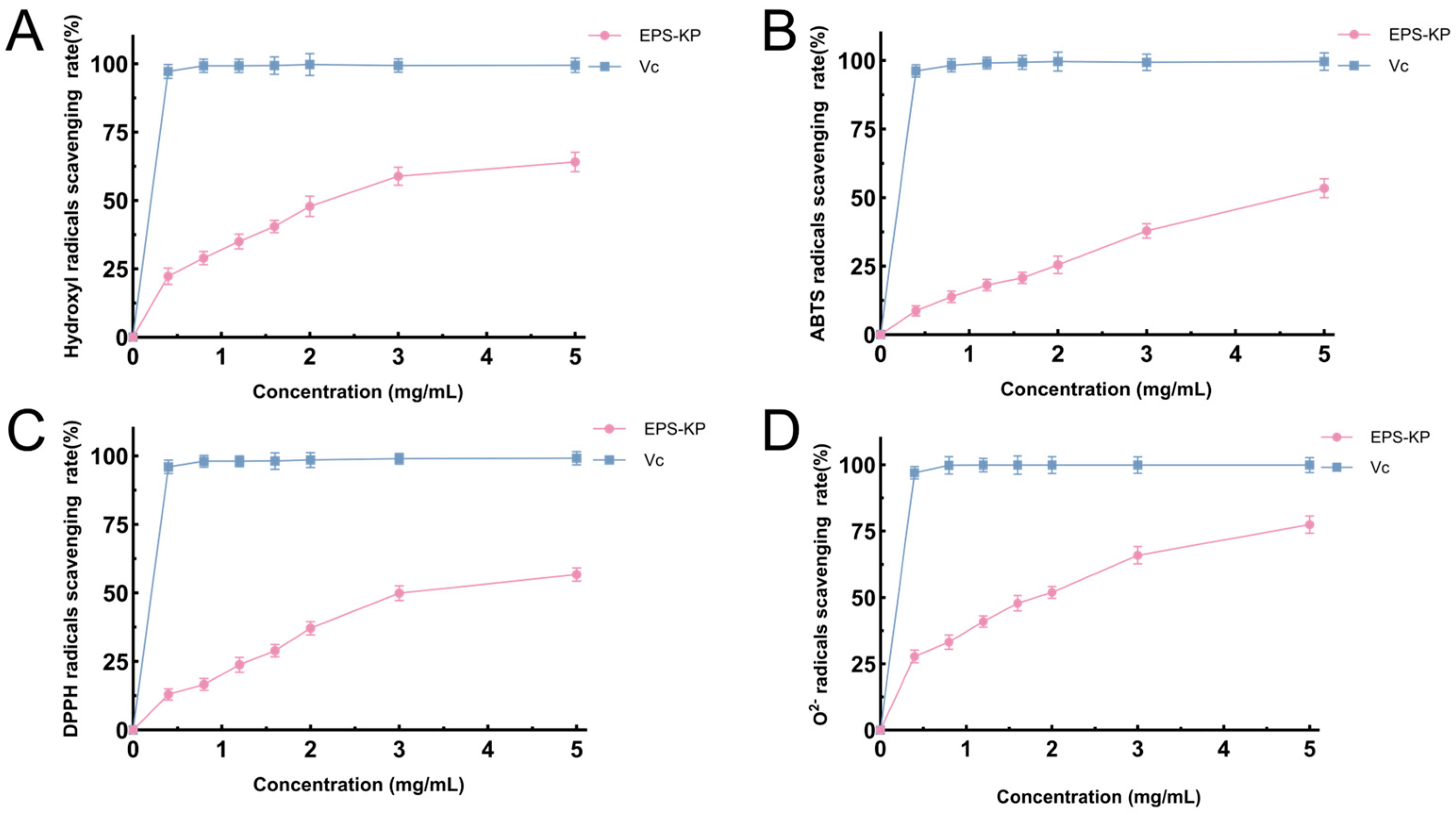 3.5. Analysis of Antioxidant Activity of EPS-KP