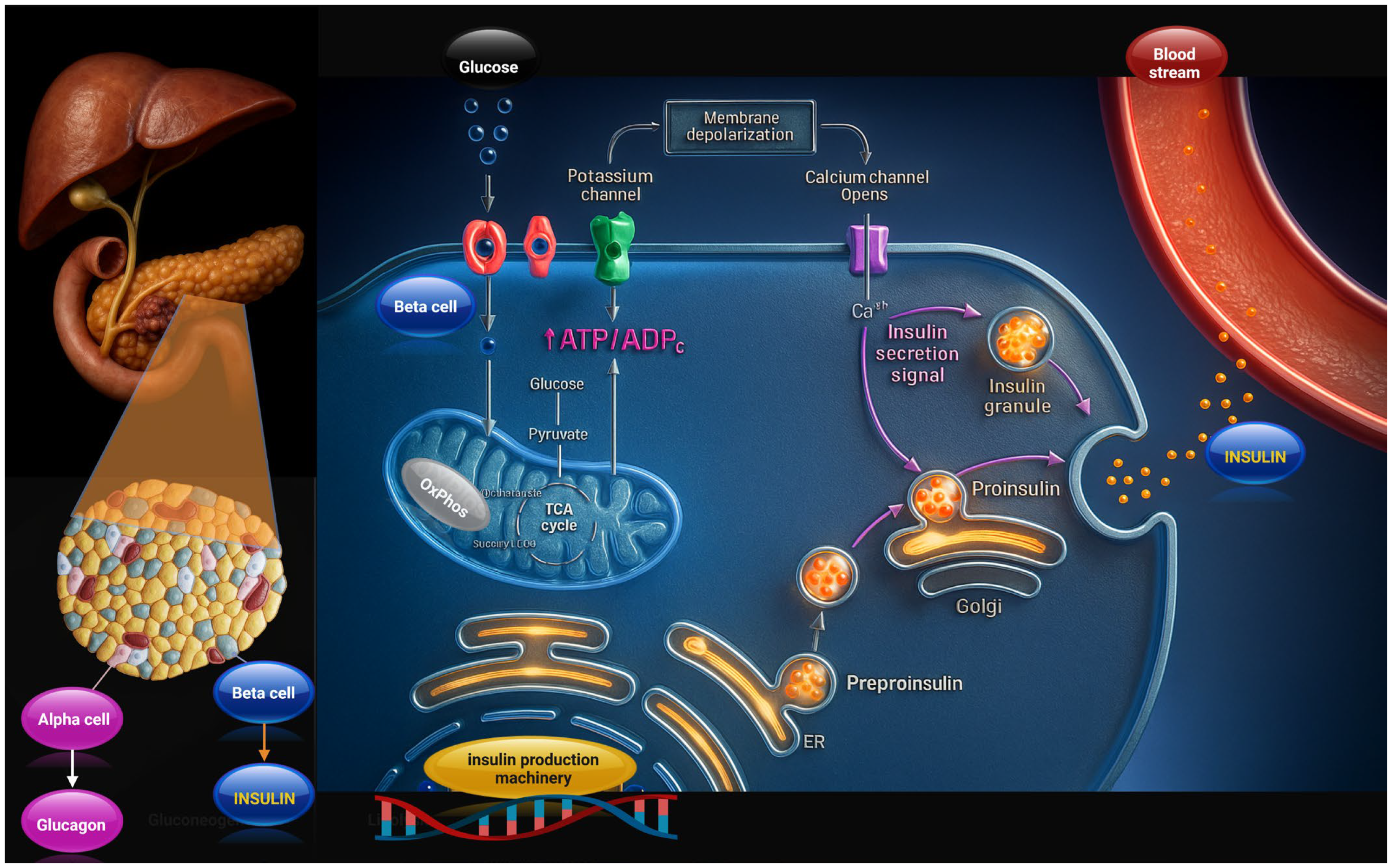 2. Insulin and Its Pancreatic Production: Molecular Mechanisms and Physiological and Pathological Implications