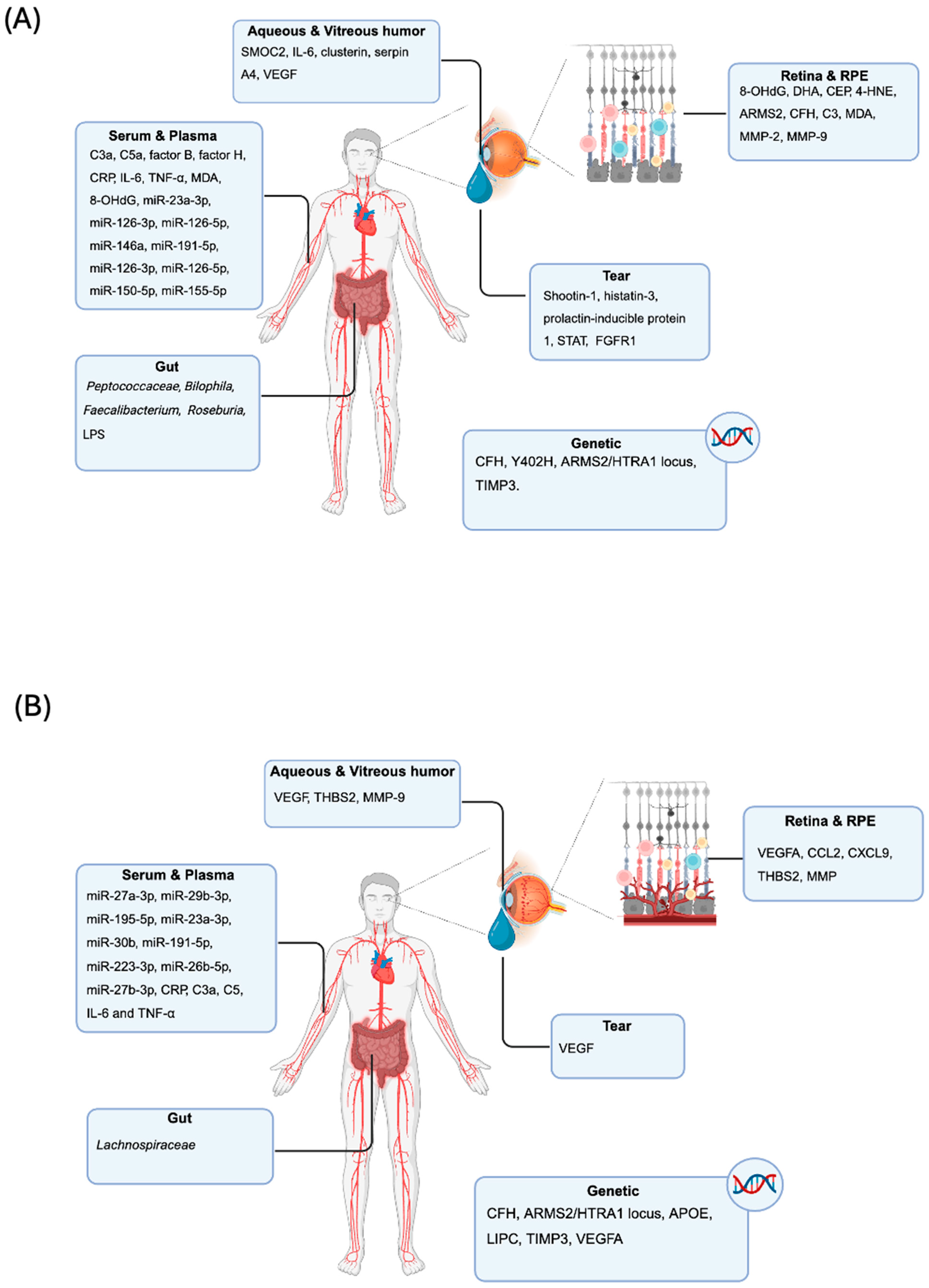 APA StyleIntonti, S., Olivieri, C., Reibaldi, M., Borrelli, E., Curcio, C., & Conedera, F. M. (2025). Translational Molecular and Fluid Biomarkers for Age-Related Macular Degeneration: Practical Insights from Animal Models and Humans. Biomolecules, 15(11), 1571. https://doi.org/10.3390/biom15111571