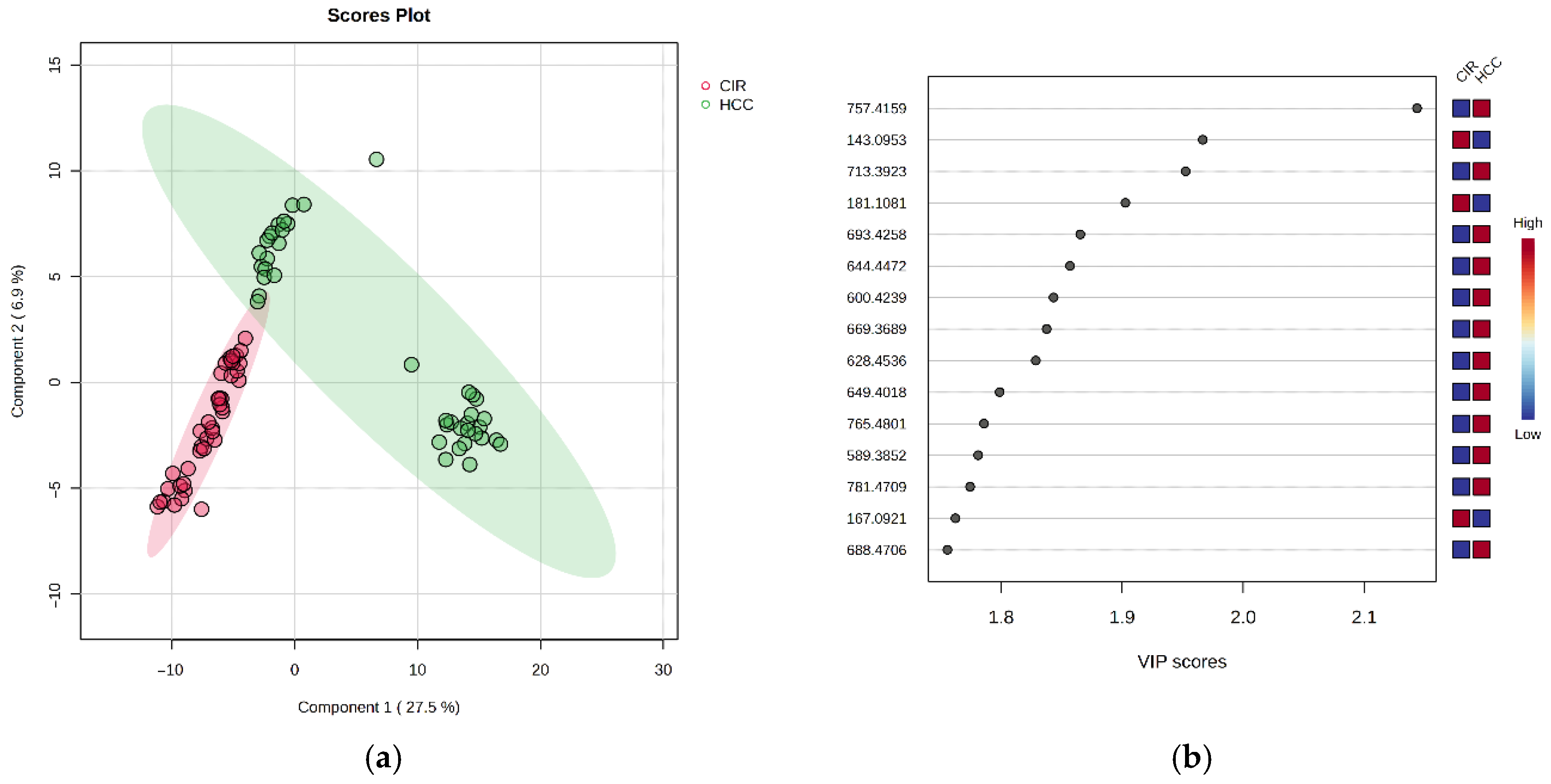 3.2. Untargeted Multivariate Analysis of CIR vs. HCC Group