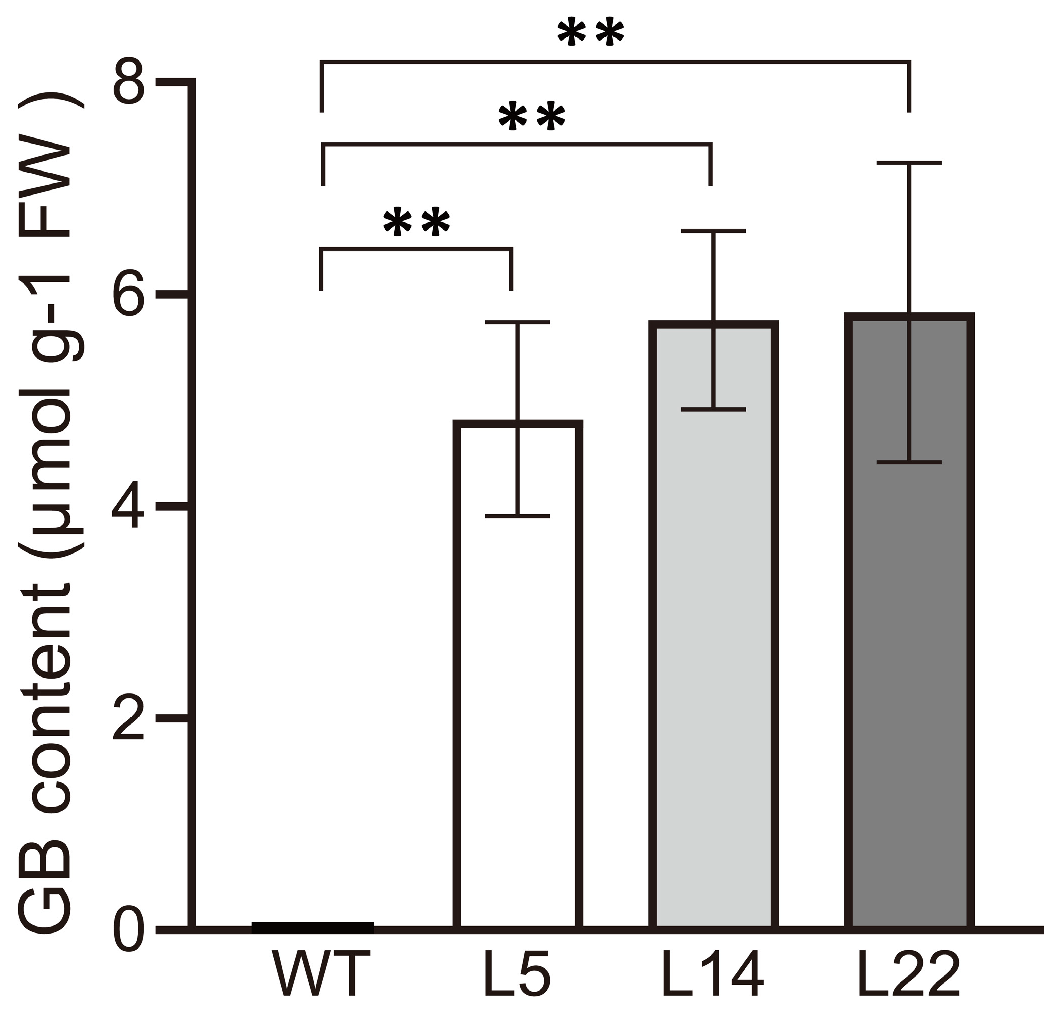 3.3. Determination of GB Content in Transgenic Rice