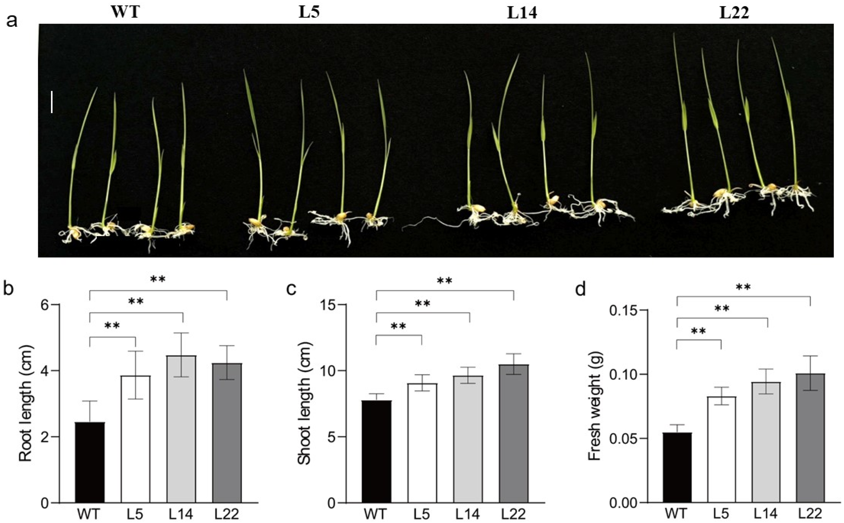 3.4. Salt and Low-Temperature Tolerance of Transgenic Rice