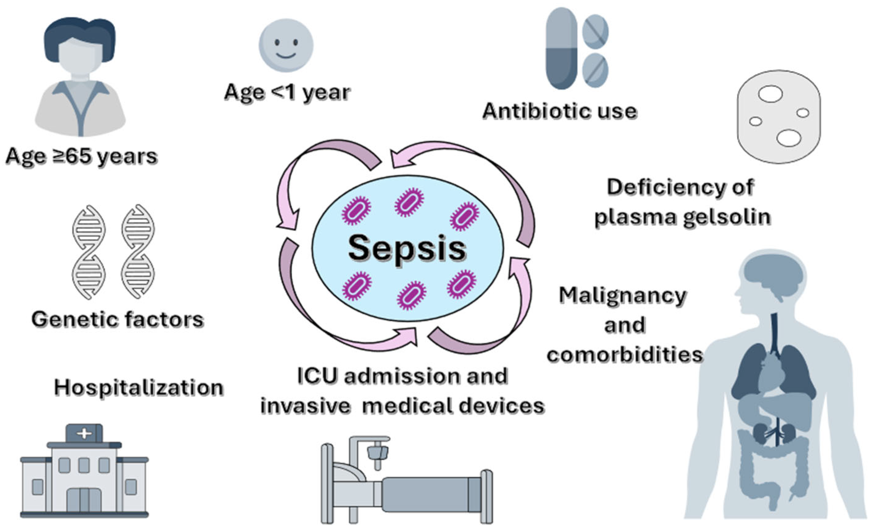 Besides clinical factors, genetic variants have been identified that impact the immune response at the molecular level, increasing susceptibility to sepsis and its severe forms. Genetic polymorphisms in genes encoding pathogen recognition receptors, such as Toll-like receptors (TLR-4 or TLR-2), can change immune cell responses to bacterial lipopolysaccharides (LPS), influencing the development of the inflammatory response [