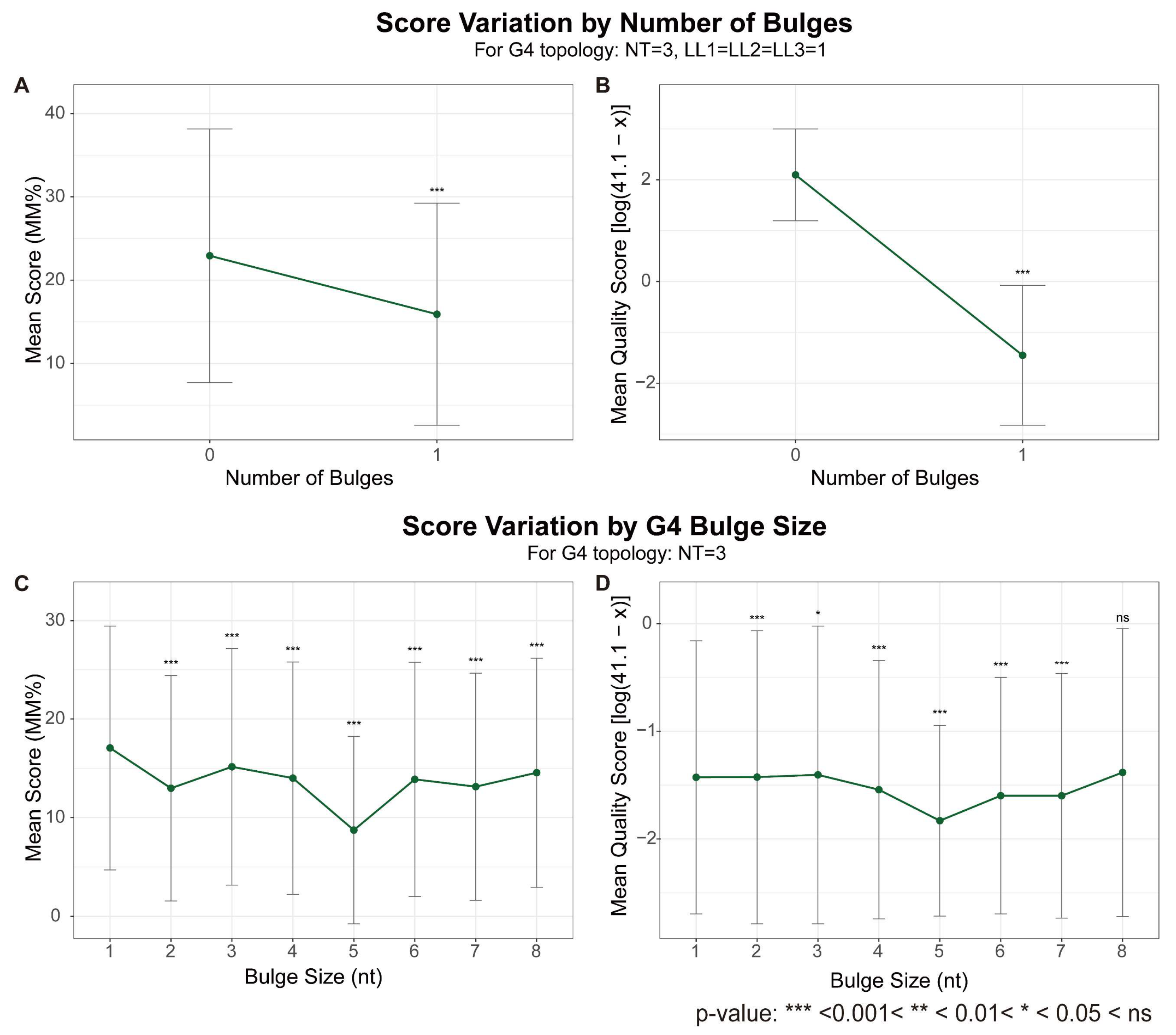 2.2. Bulges in G-Tracts: The Impact of Imperfections