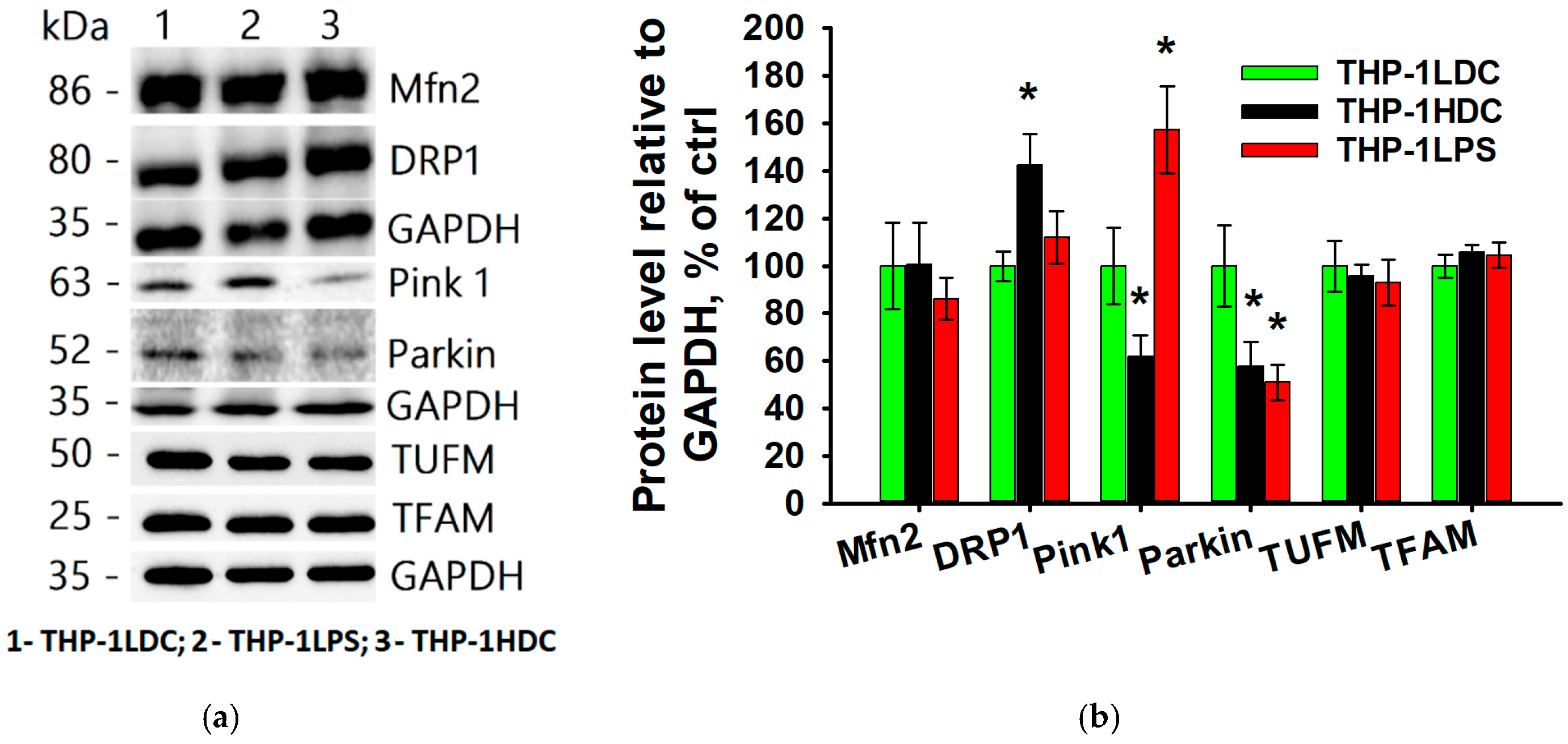 3.4. Key Marker Proteins of Mitochondrial Quality Control System in THP-1 Acute Myeloid Leukemia Cells During Aseptic Inflammatory Activation