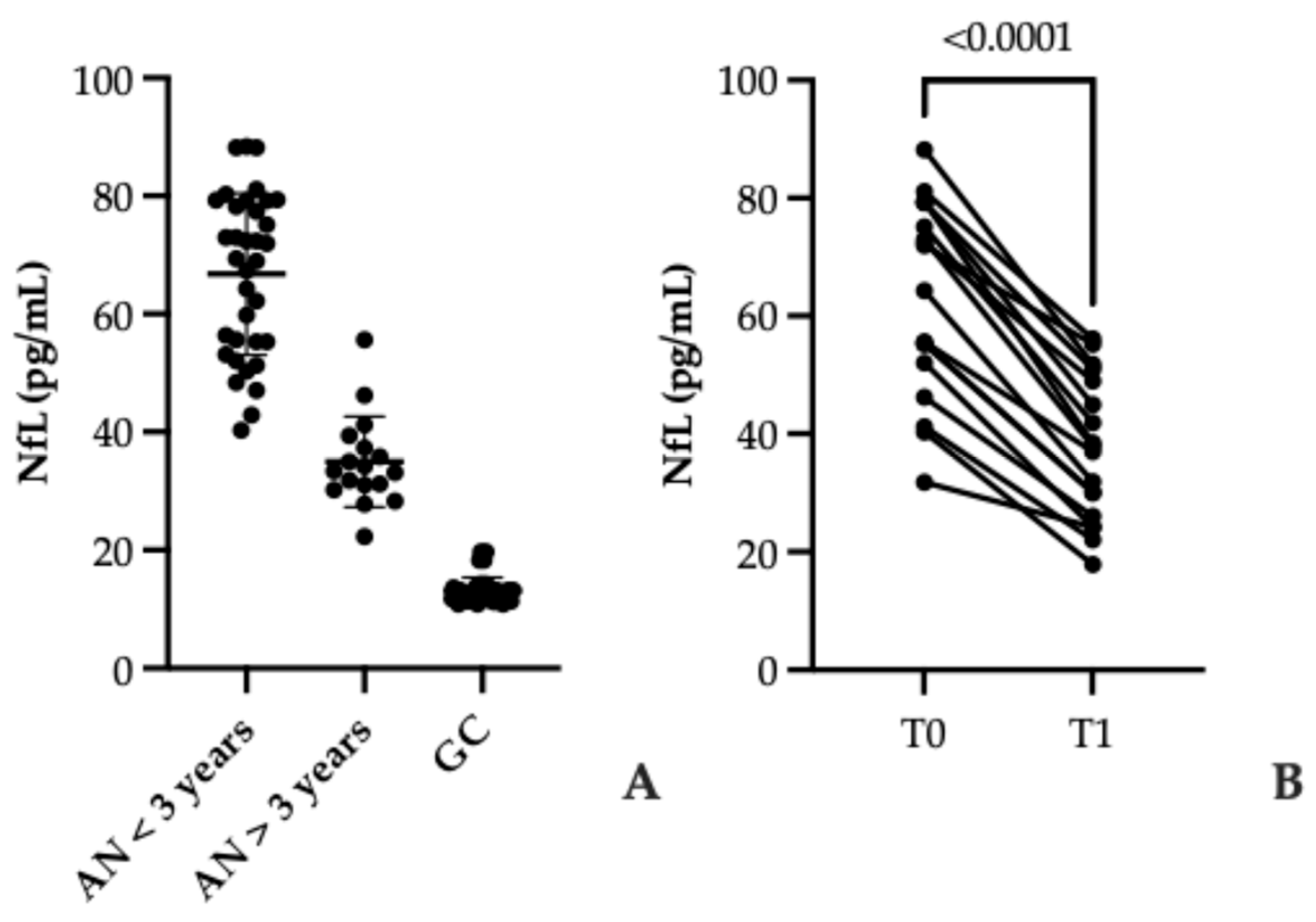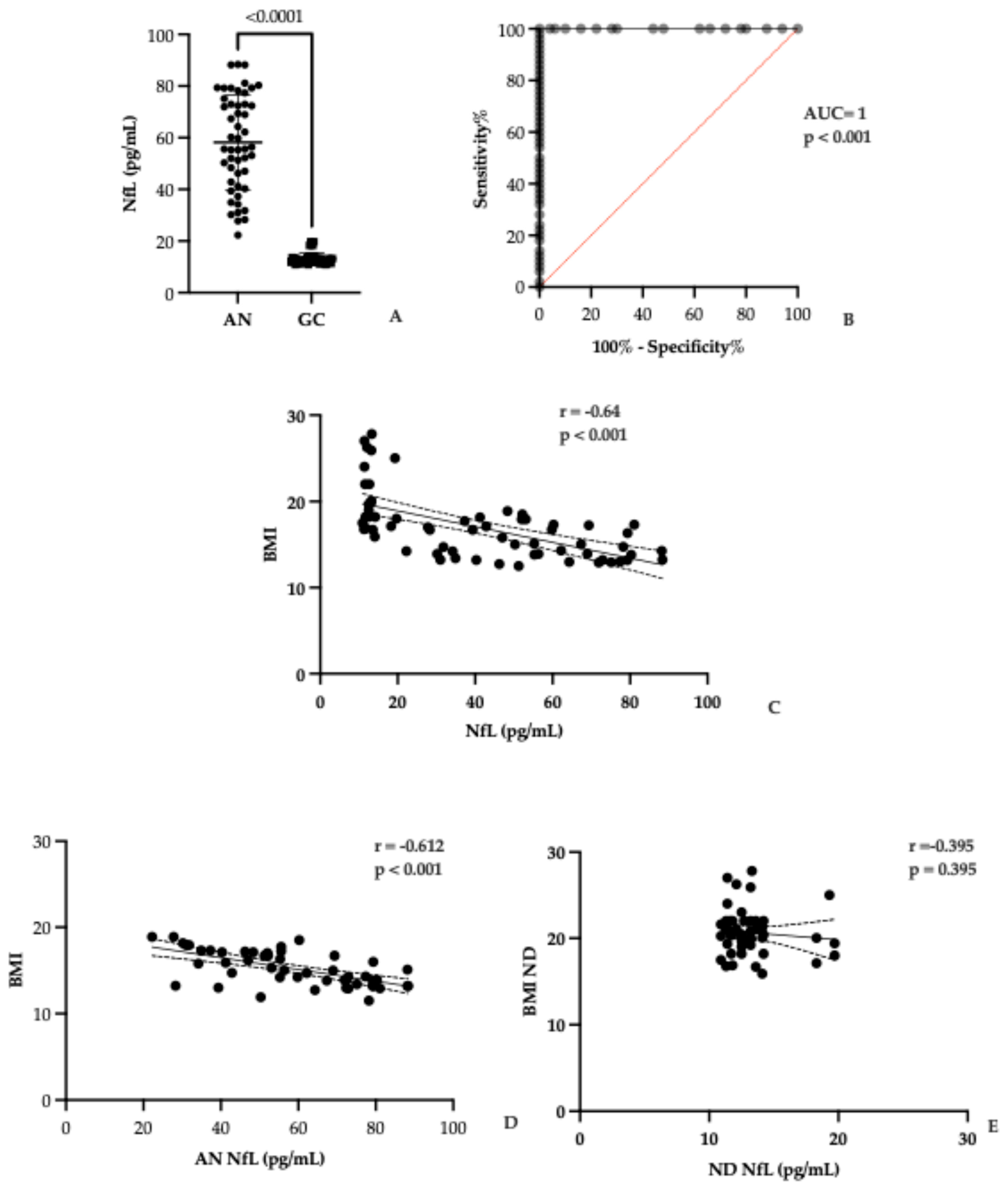 3.2. Serum NfL Levels in AN and Controls