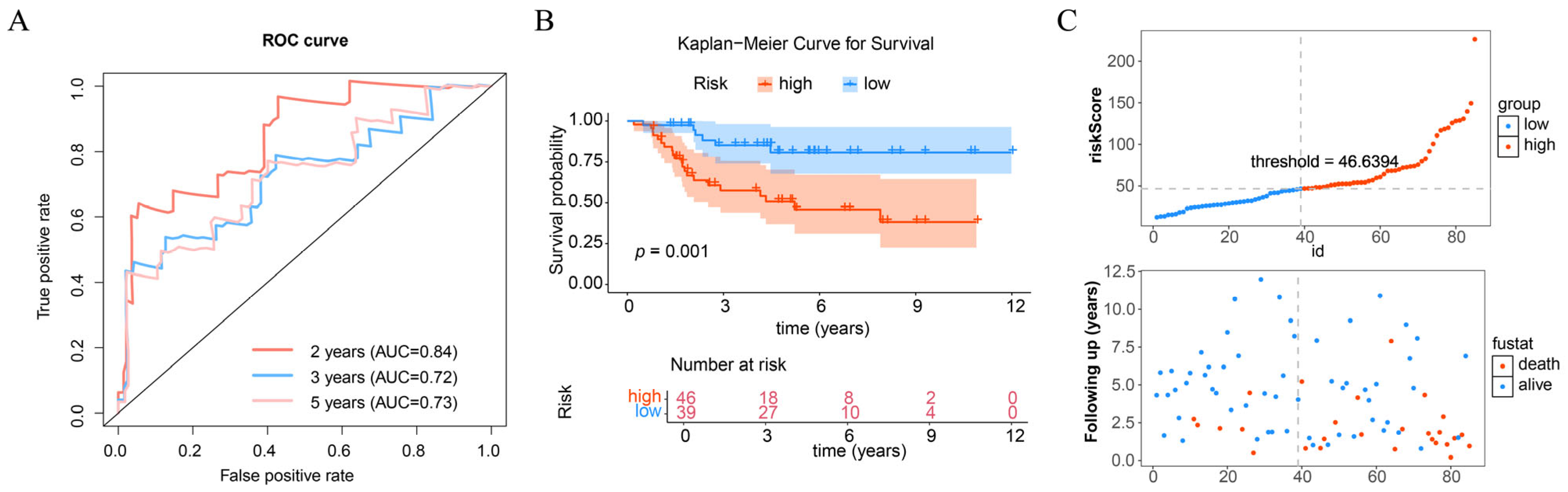 3.3. Prognostic Model Effectively Predicts the Risk of OS