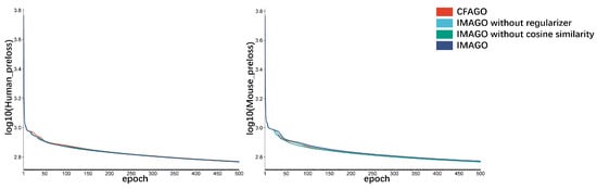 The performance of IMAGO in the mouse data set is not as good as that in the human data set, which may be related to the characteristics of the data set. It can also be reflected from the loss in the pre-training stage of IMAGO (see Figure 3), and the convergence speed of the mouse data set is slower than that of CFAGO. It is precisely because different data sets have different noise levels and feature distributions that the regularization and loss function optimization effect of IMAGO on some data sets may be more advantageous.