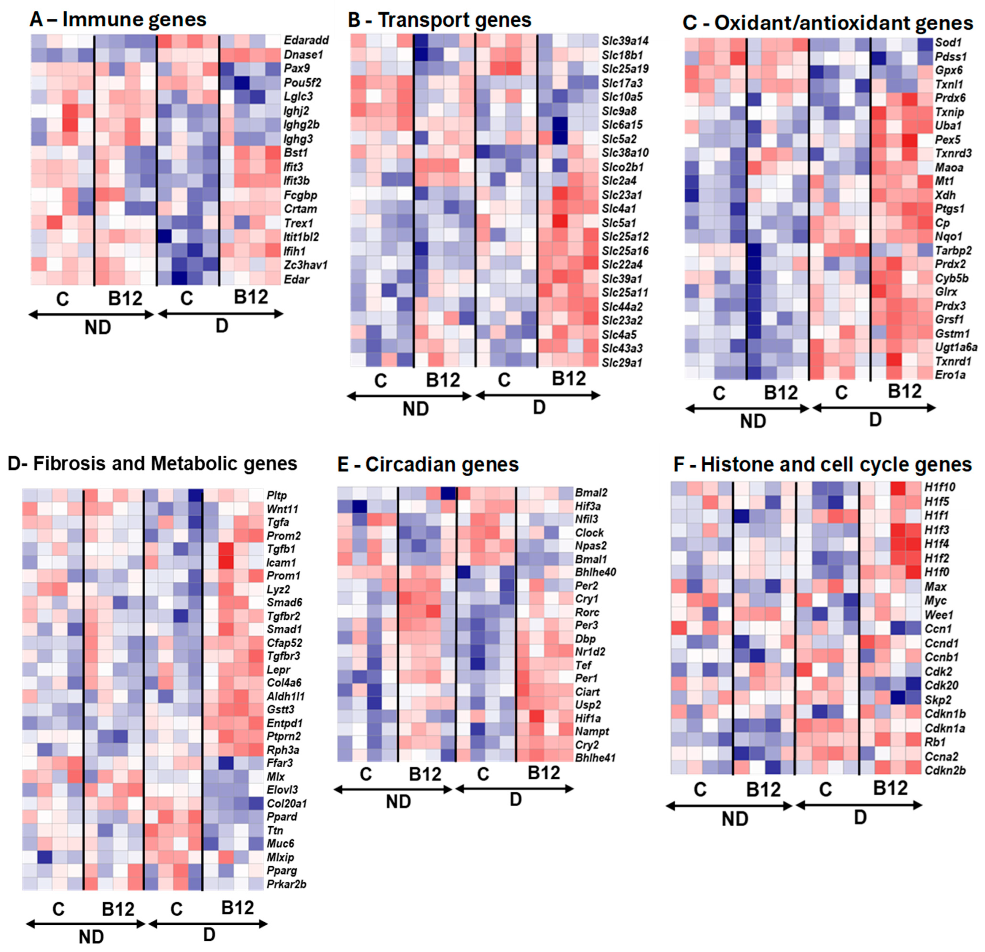 3.2. Global Gene Expression Analyses Revealed Pathways Through Which B12 Mitigates DN Development